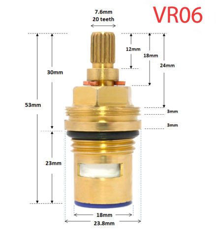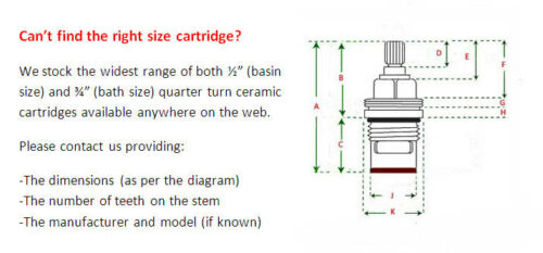 Replacement tap cartridge valve ceramic disc gland quarter turn 20 teeth 1/2"