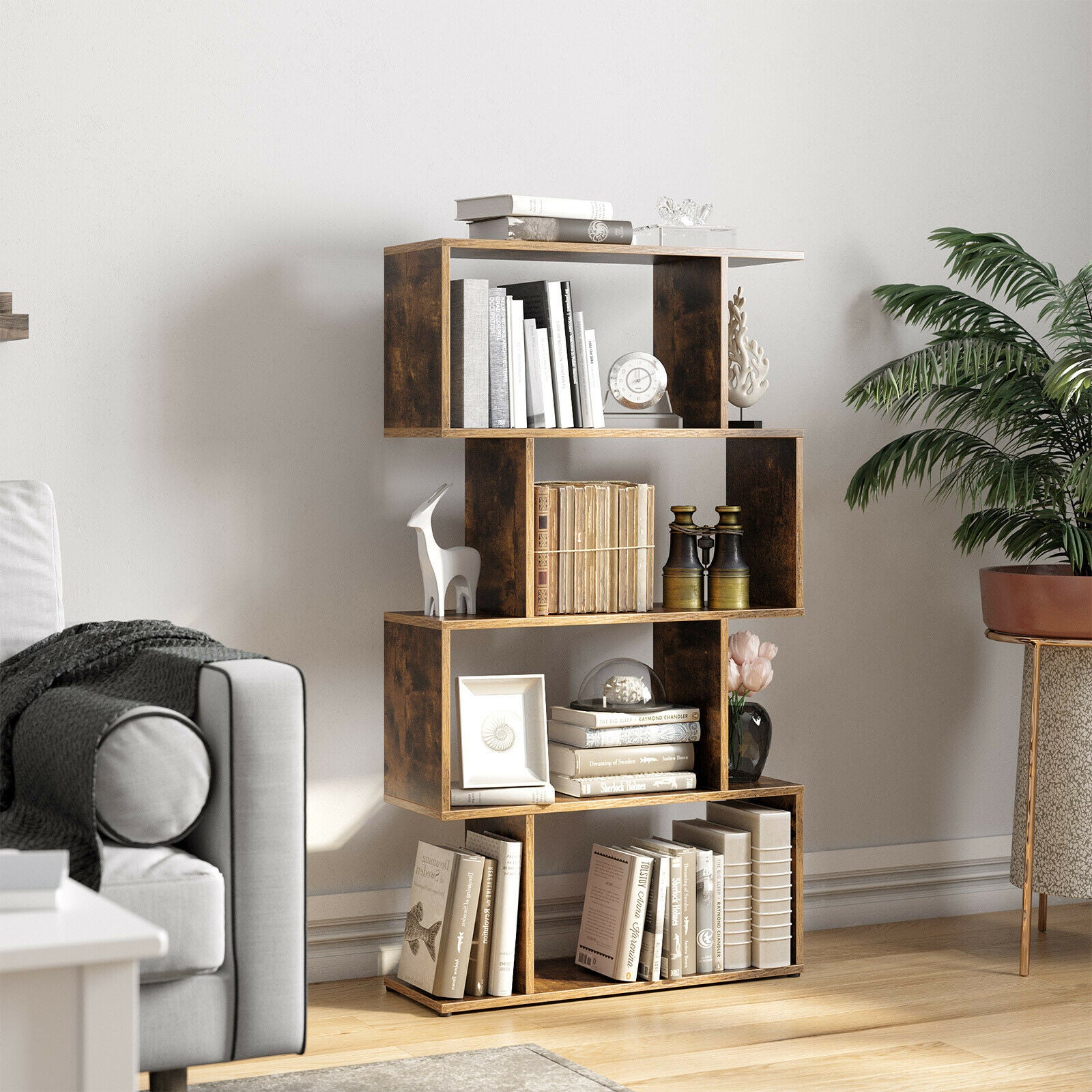 Retro 4 Tier Bookcase S Shape Storage Shelf Display Unit Stand Wooden LBC41BX