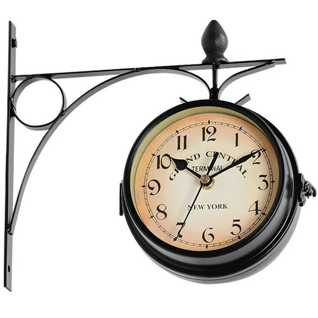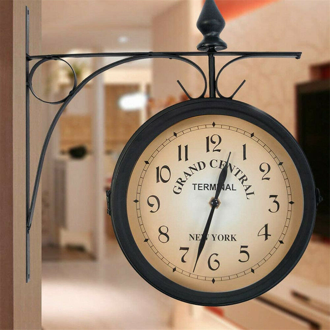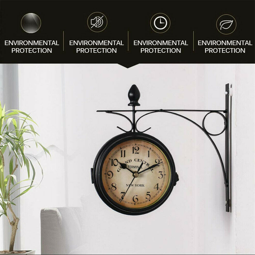 Retro Double-Sided Wall Clock with Stem Fixing Pendulum For Home Outdoor Garden