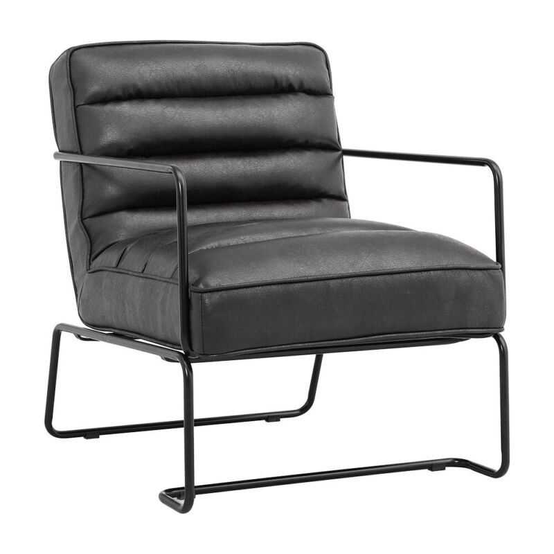 Retro Faux Leather Upholstered Armchair Industrial Steel Frame Accent Sofa Chair