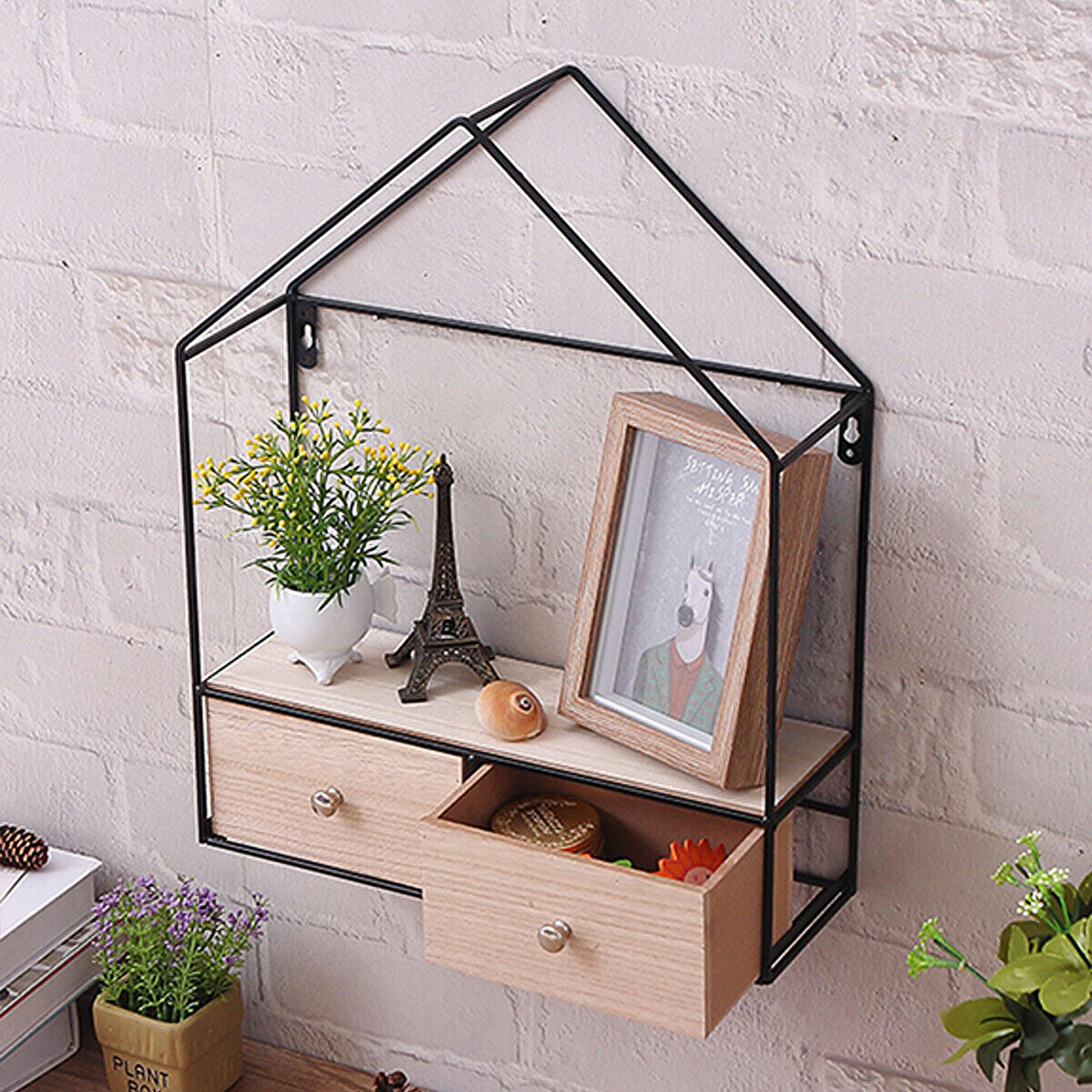 Retro Floating Shelves Metal Wood Wall Shelf Hanging Decor Storage Display Rack