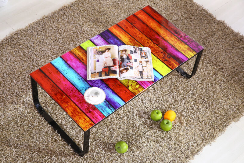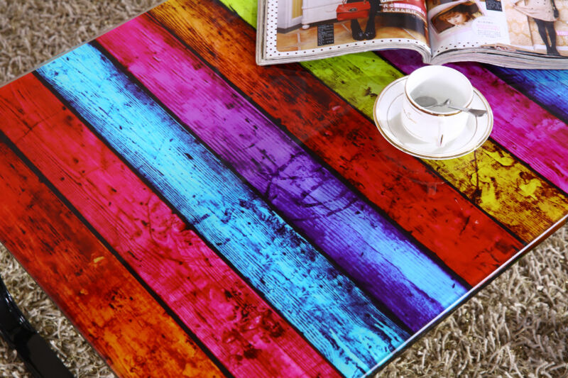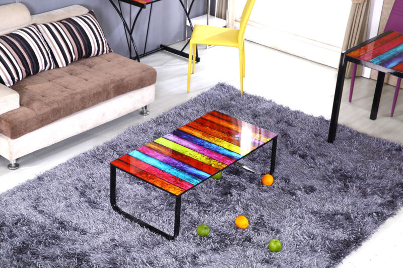 Retro Glass Coffee Side Table with Black Metal Legs Living Bedroom Furniture NEW