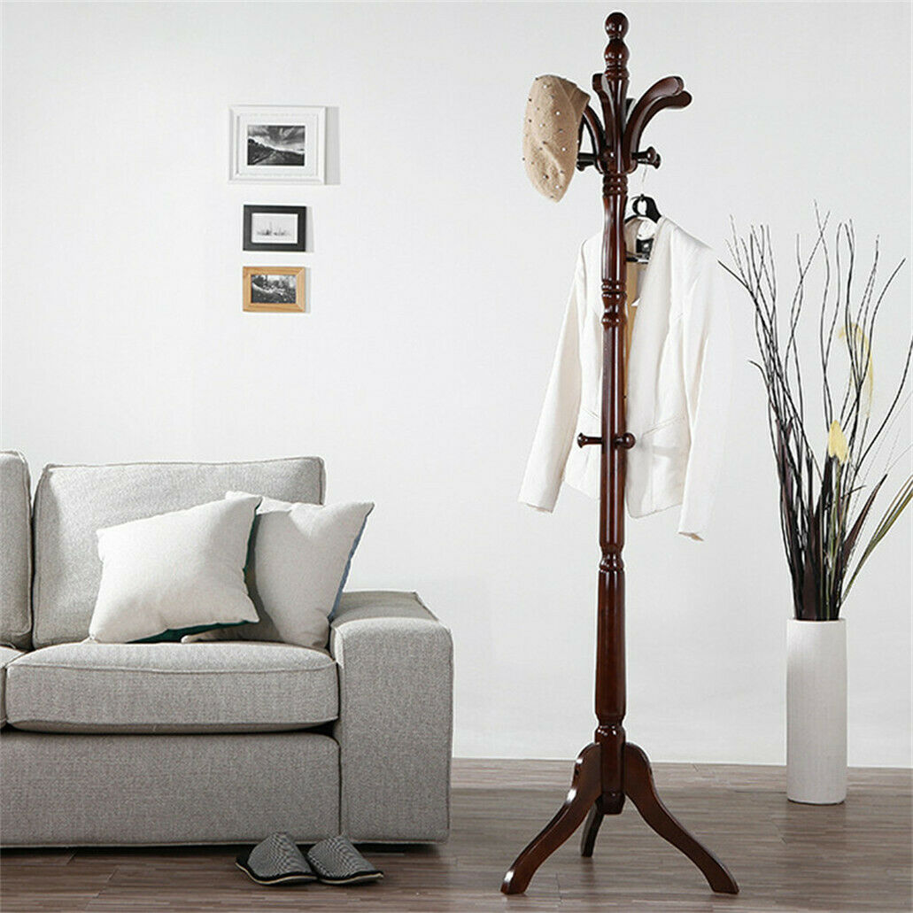 Retro Hall Tree Hat Coat Stand Jacket Clothes Rack Umbrella with Shelves Hooks