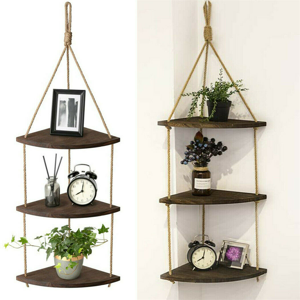 Retro Hanging Rack Corner Wall Shelf Farmhouse Storage Organizer Ladder Floating