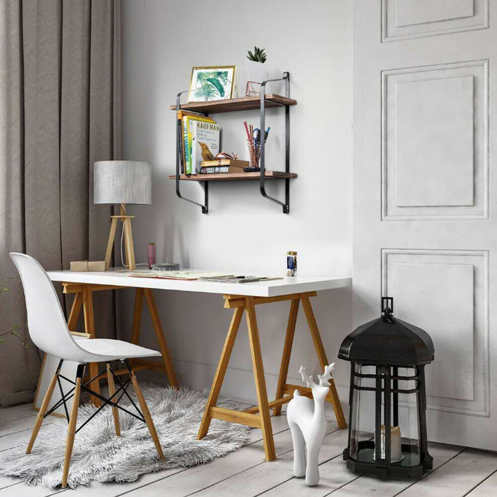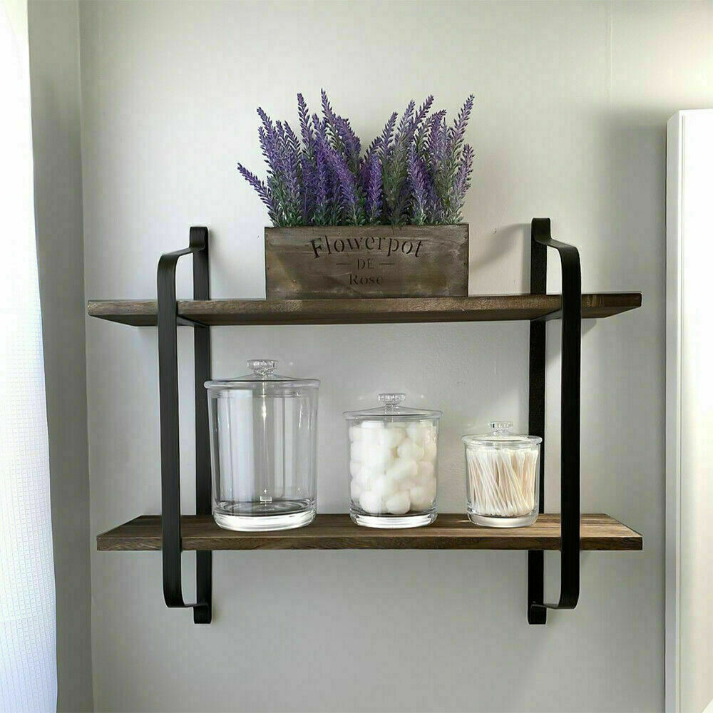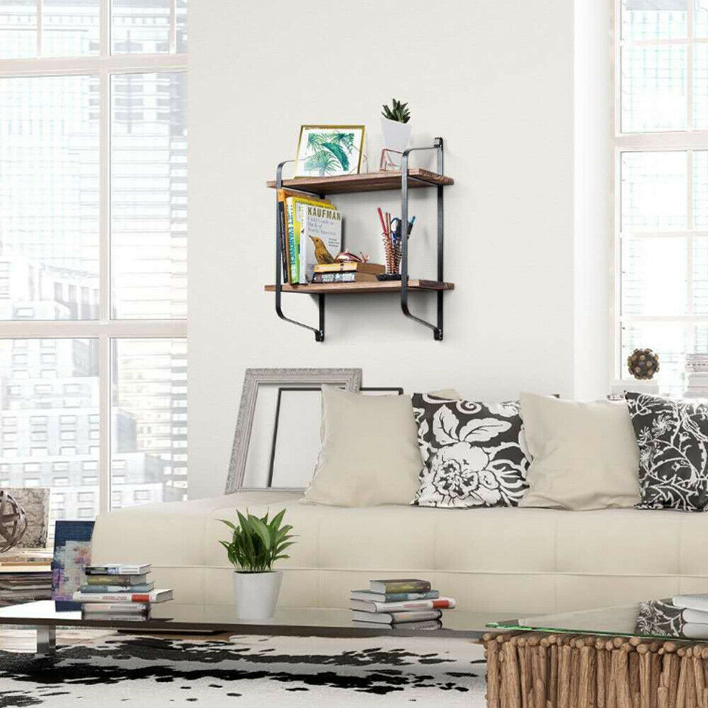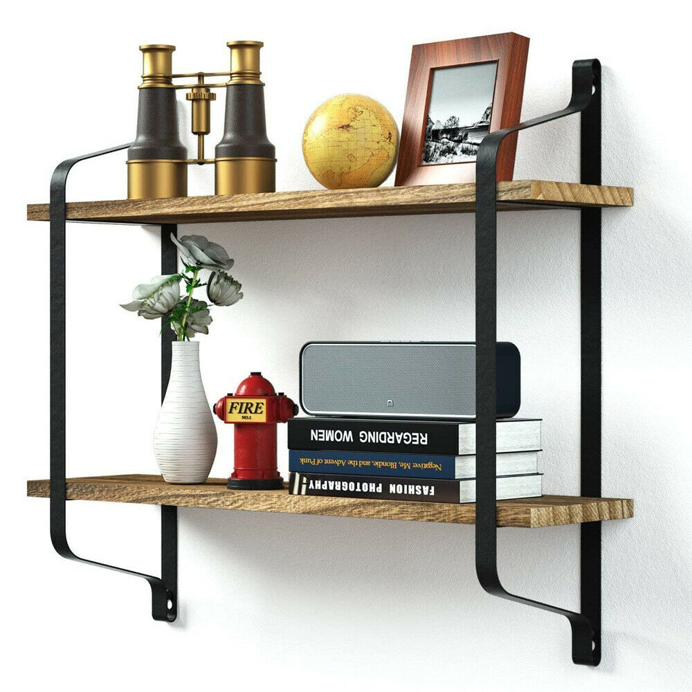 Retro Rustic Theme Wall Mount Floating Wooden Shelving Bookcase Home Decoration