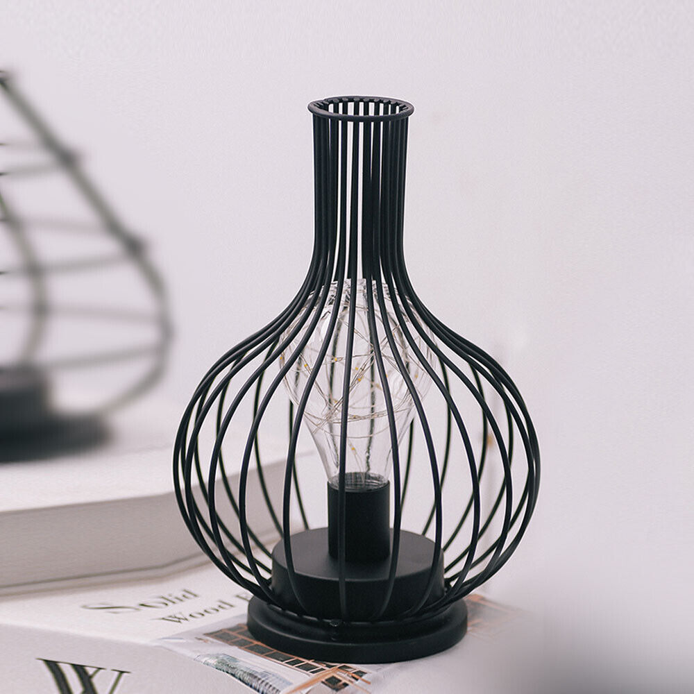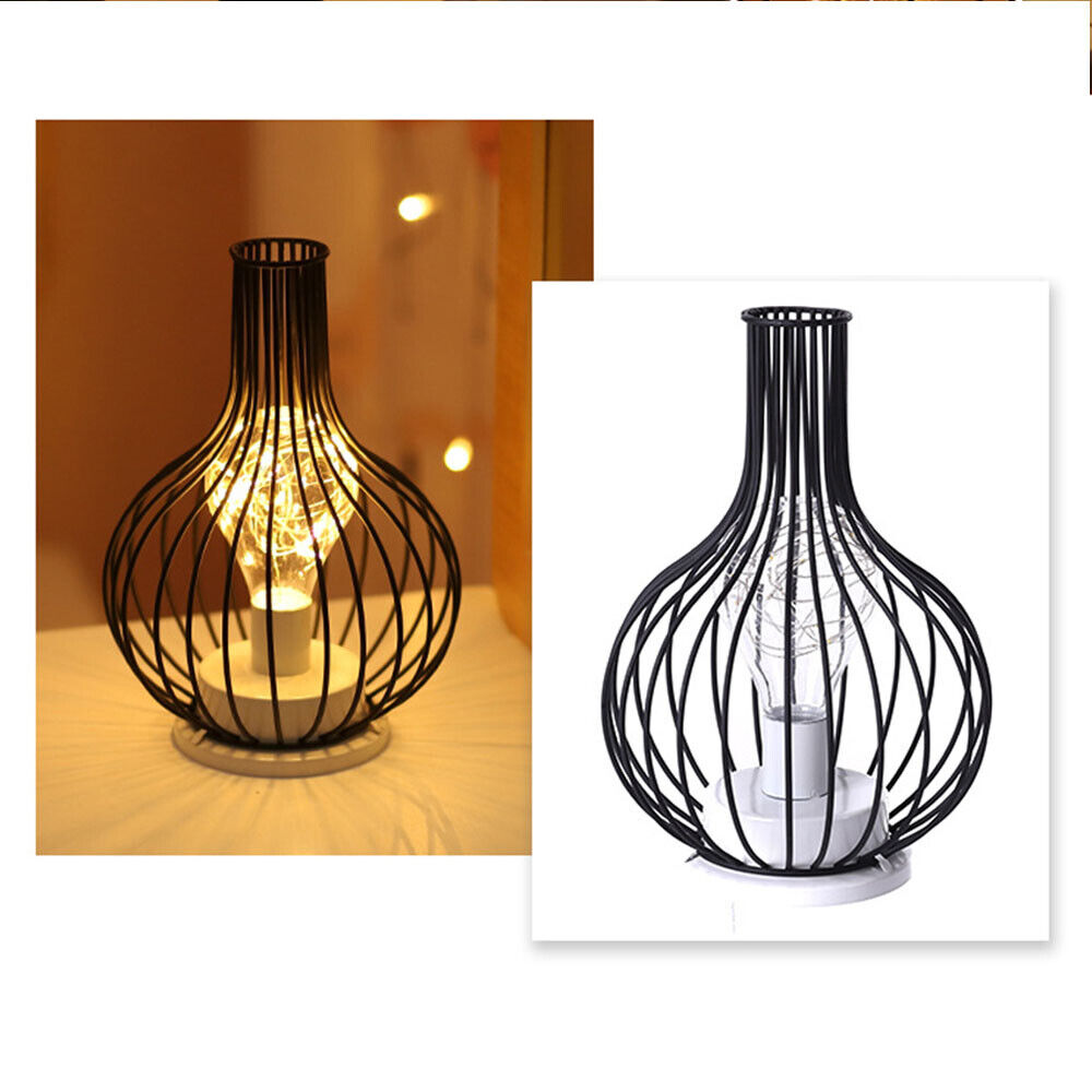 Retro Table Lamp Geometric Wire Industrial LED Light Bulb Bedside Desk Light UK