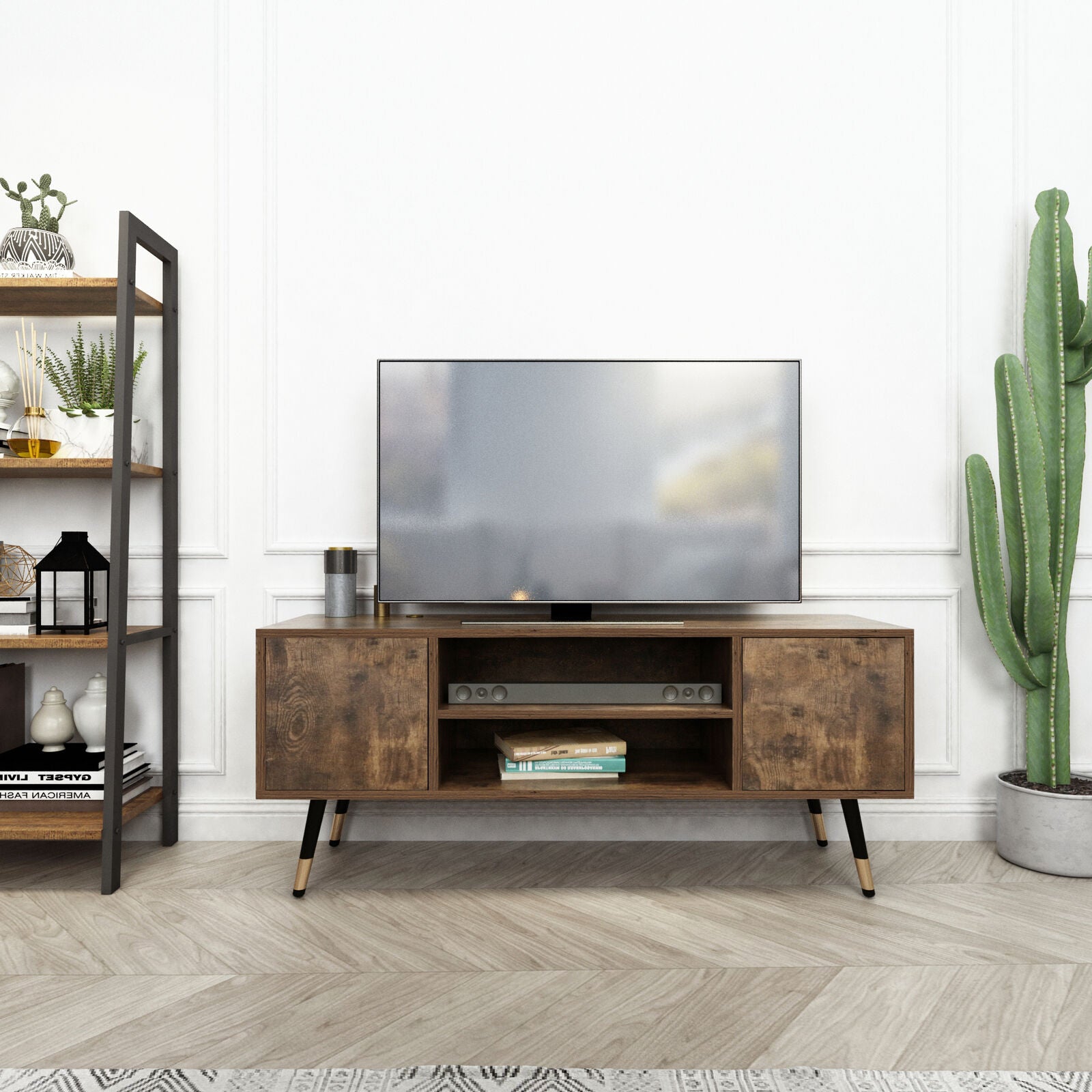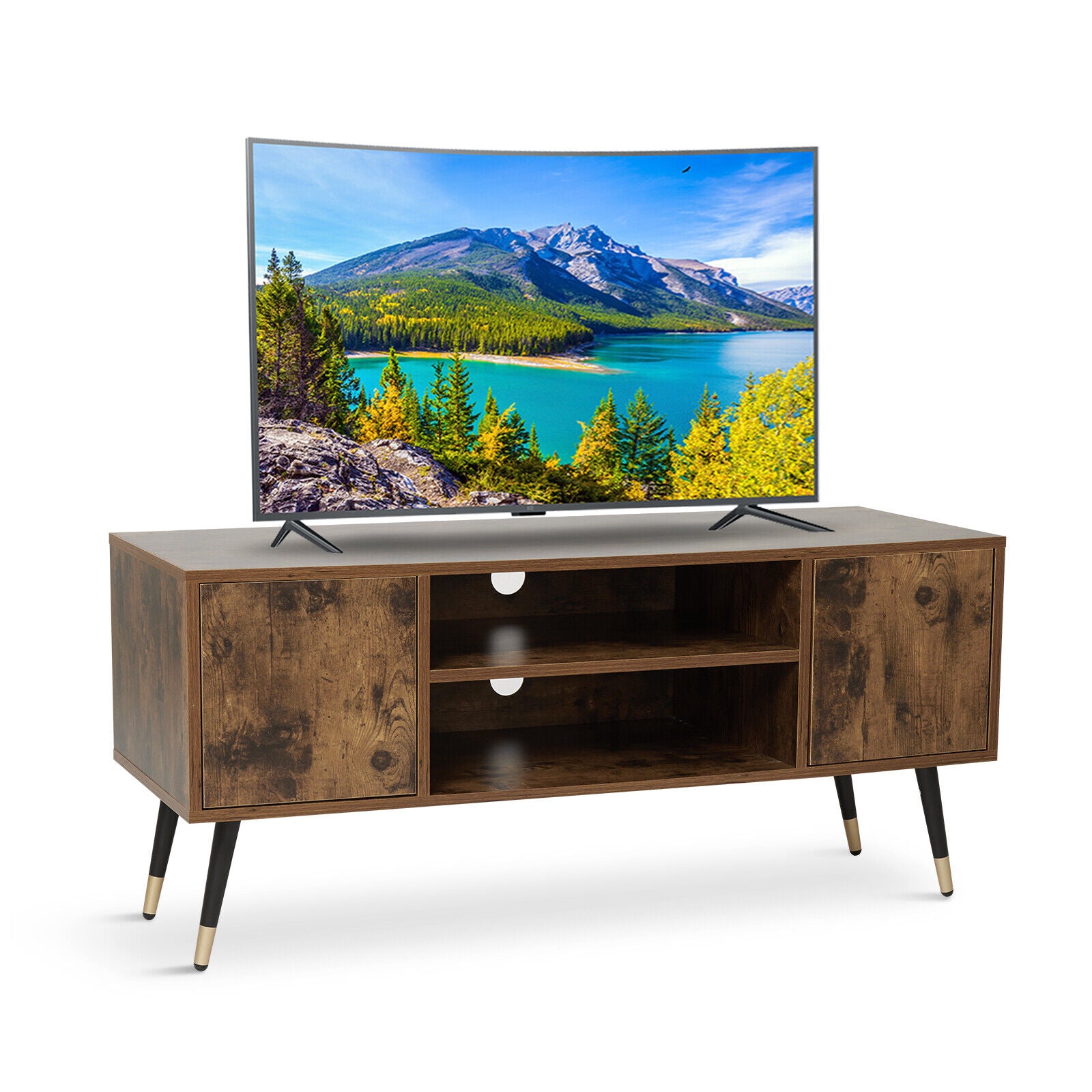 Retro TV Unit Stand TV Cabinet Industrial Style Metal Feet w/ 2 Storage Cube MDF