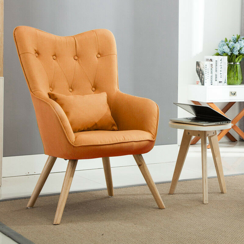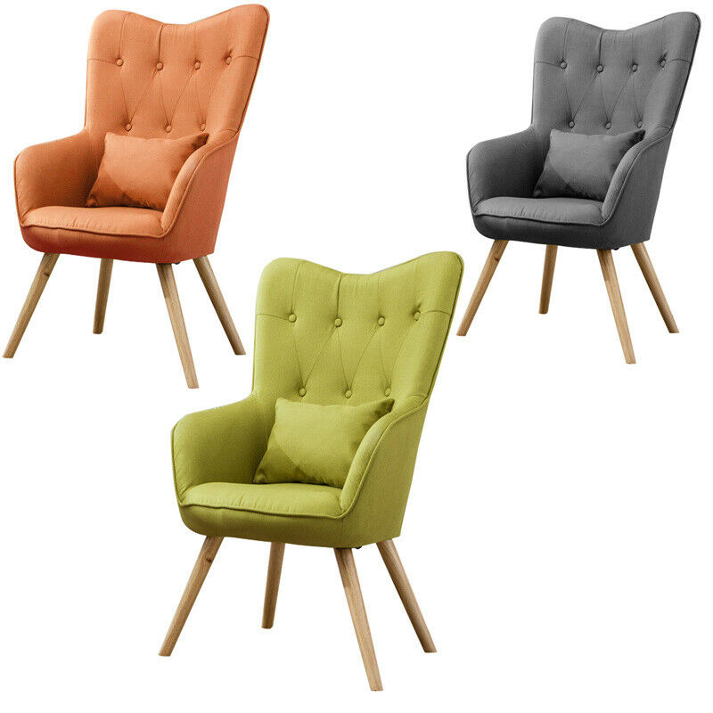 Retro Upholstered Button High Back Wingback Tub Chair Armchair Sofa Seat Fabric