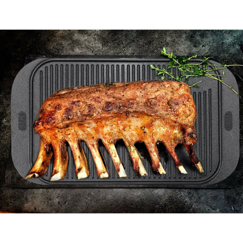Reversible Cast Iron Griddle Frying Pan Nonstick Double Sided Cooking Skillet UK
