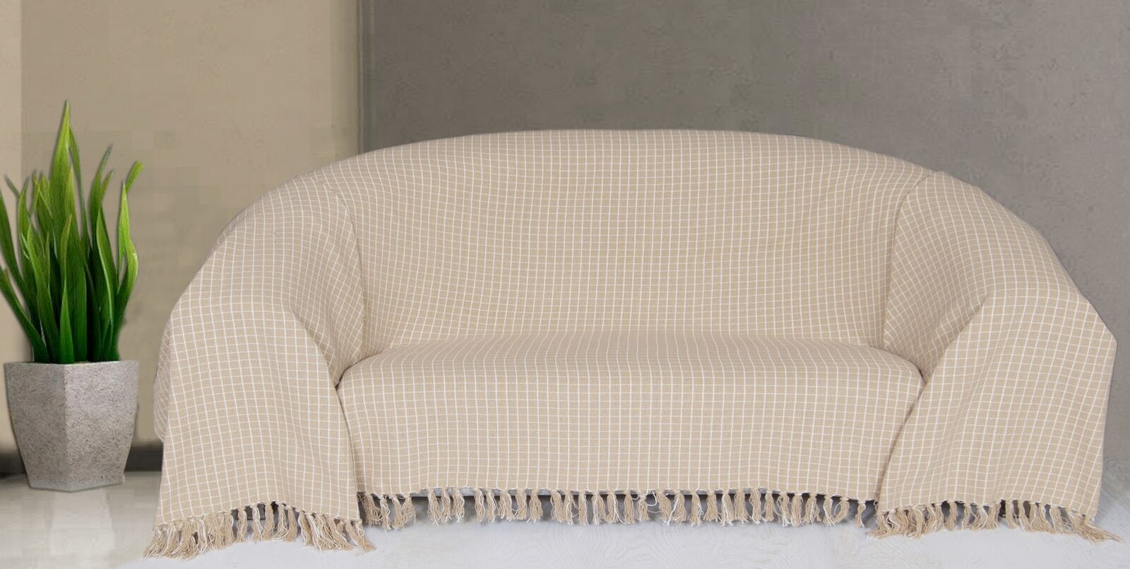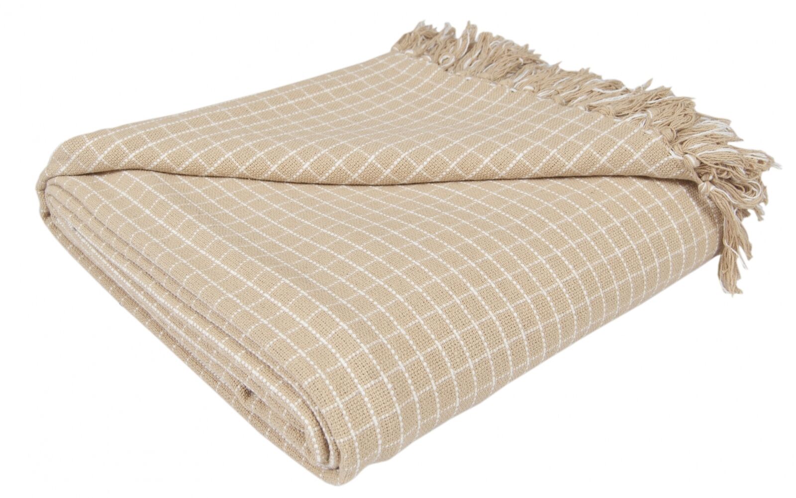 Reversible Soft Check Cotton Throw Sofa Bed King Size Throw, 225 x 250cm-Beige