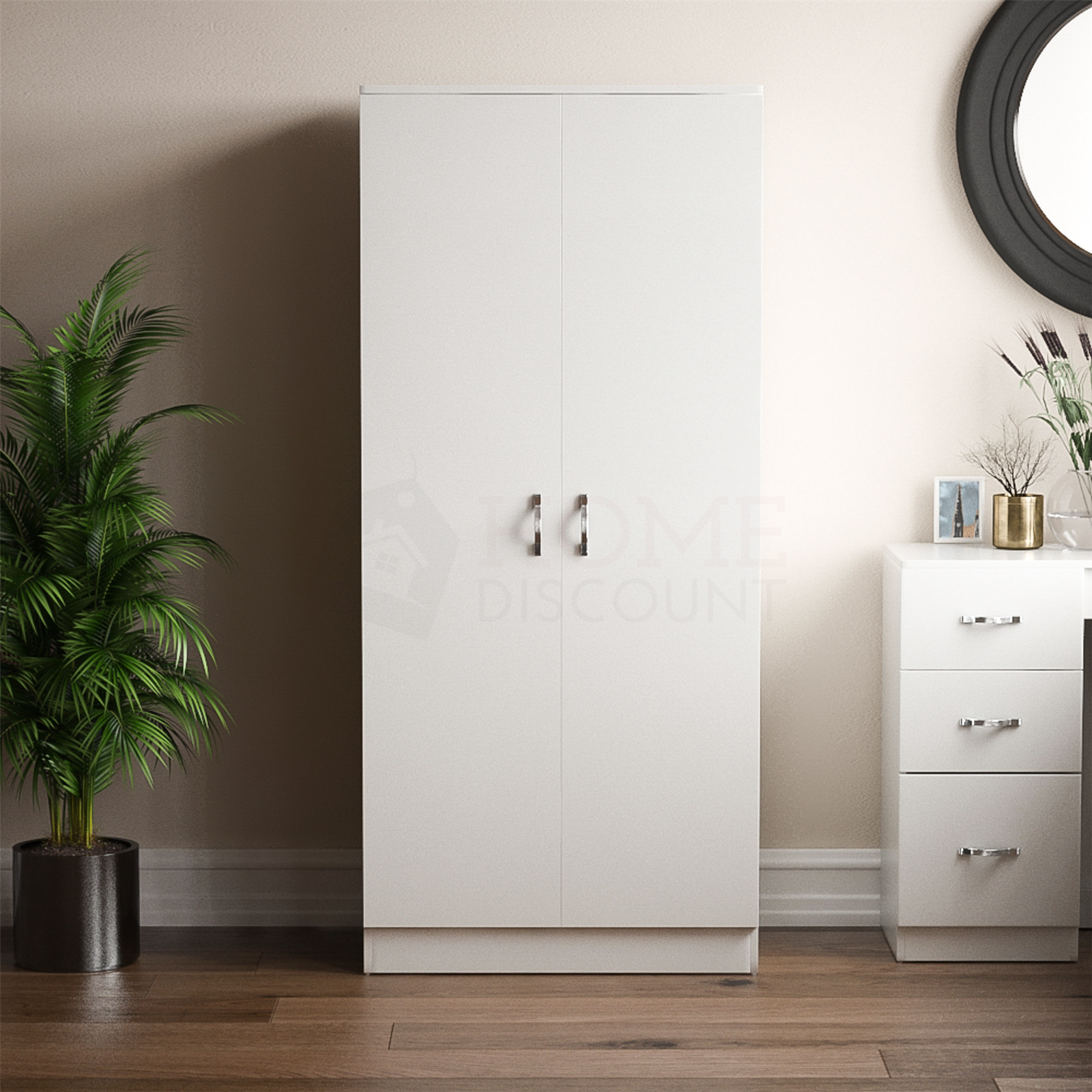 Riano 2 Door Wardrobe Bedroom Storage Solid Wood shelf Rail Furniture White