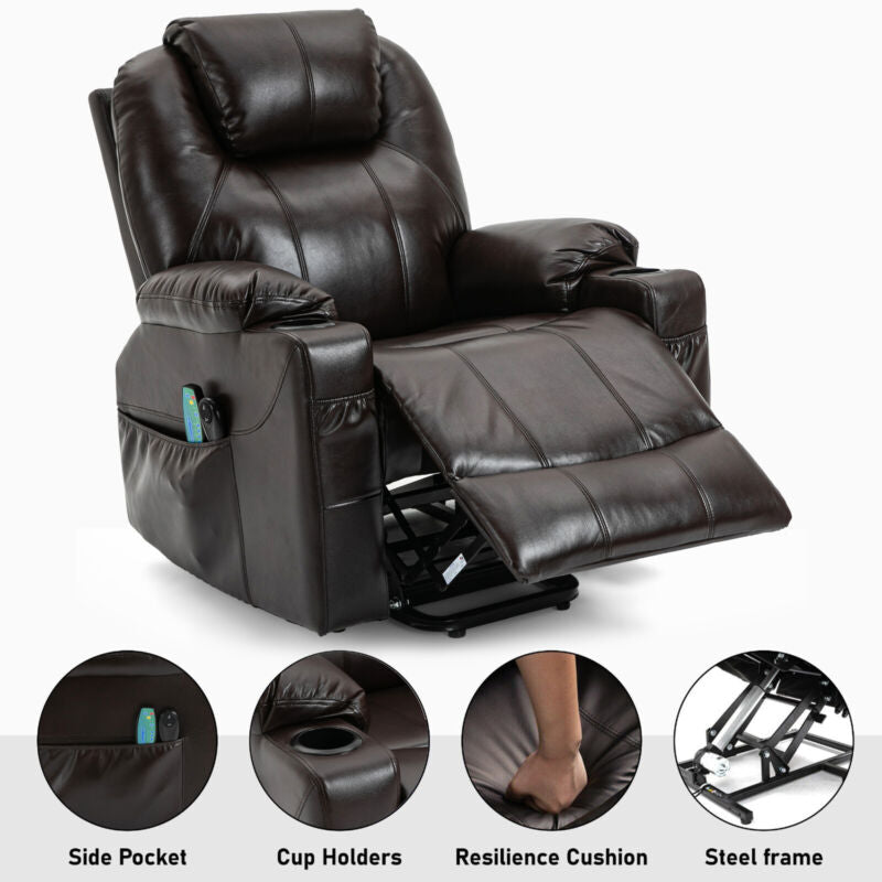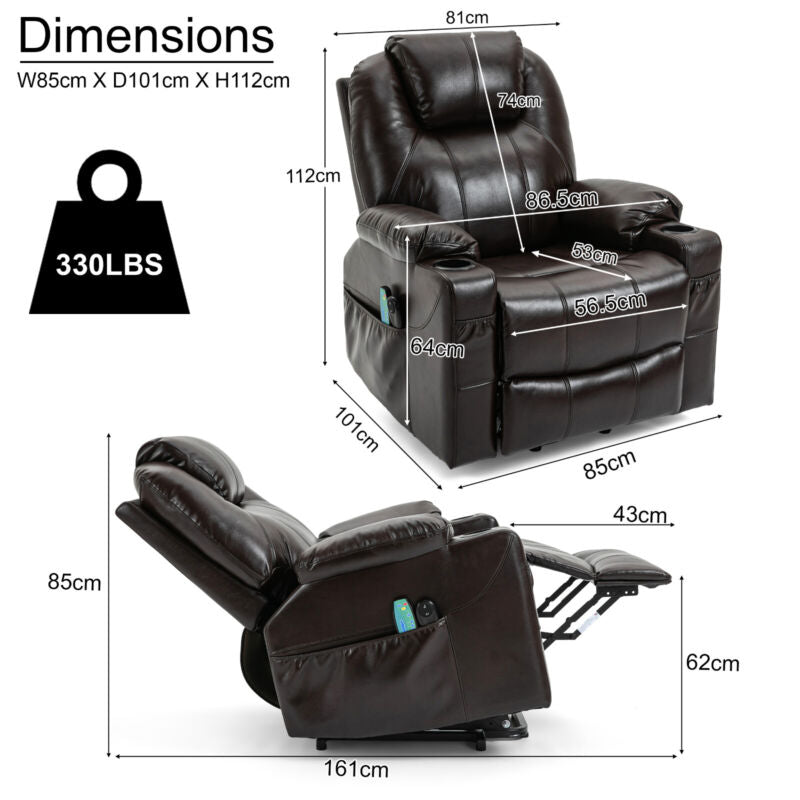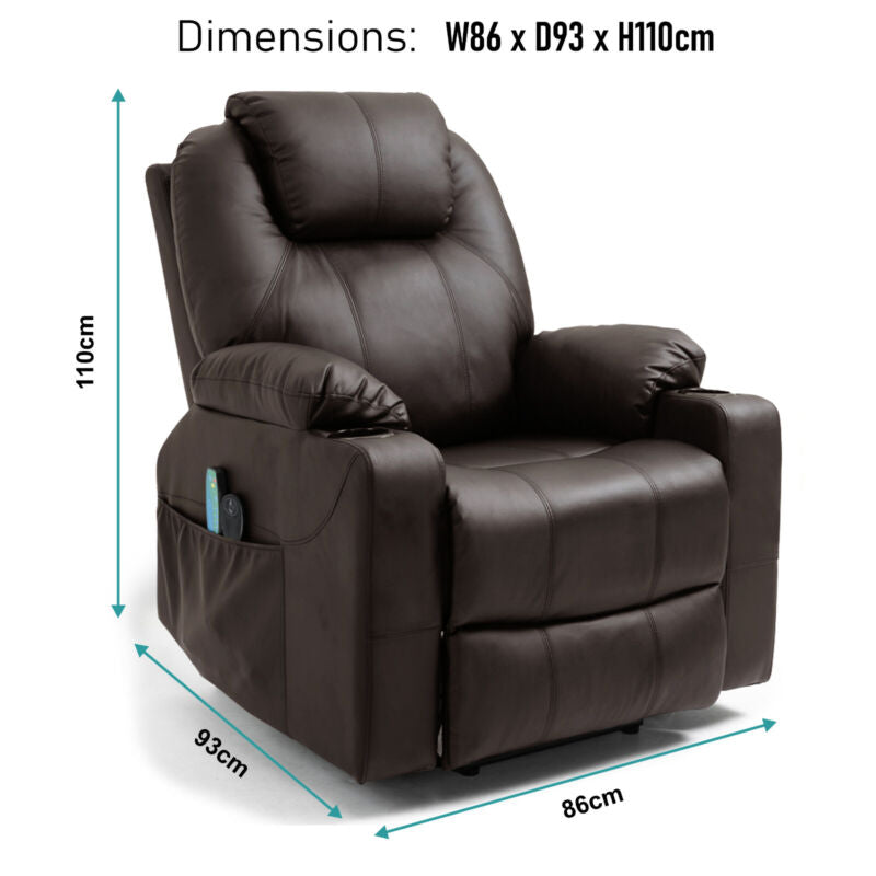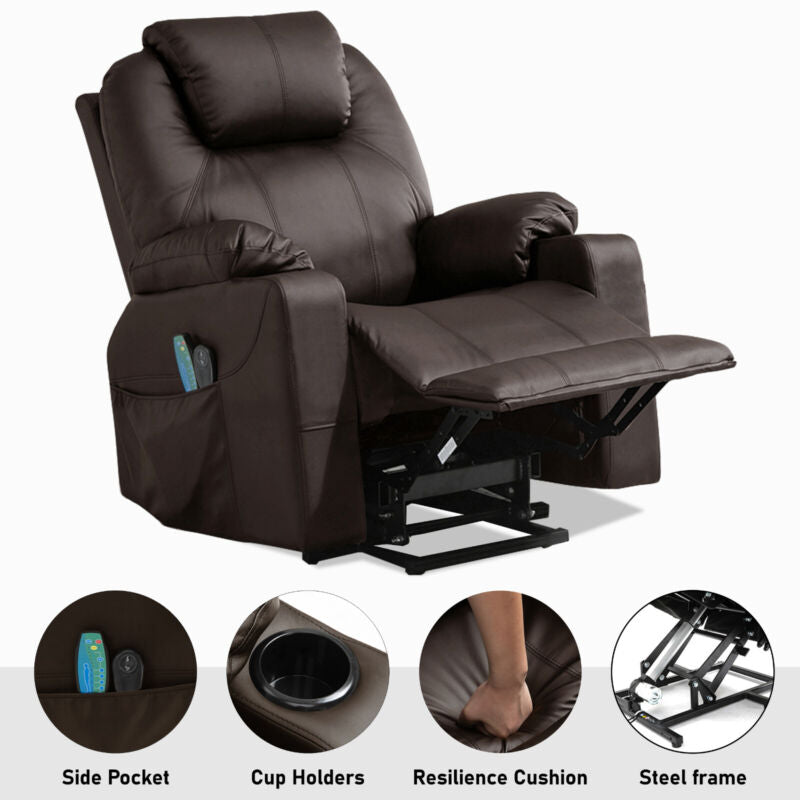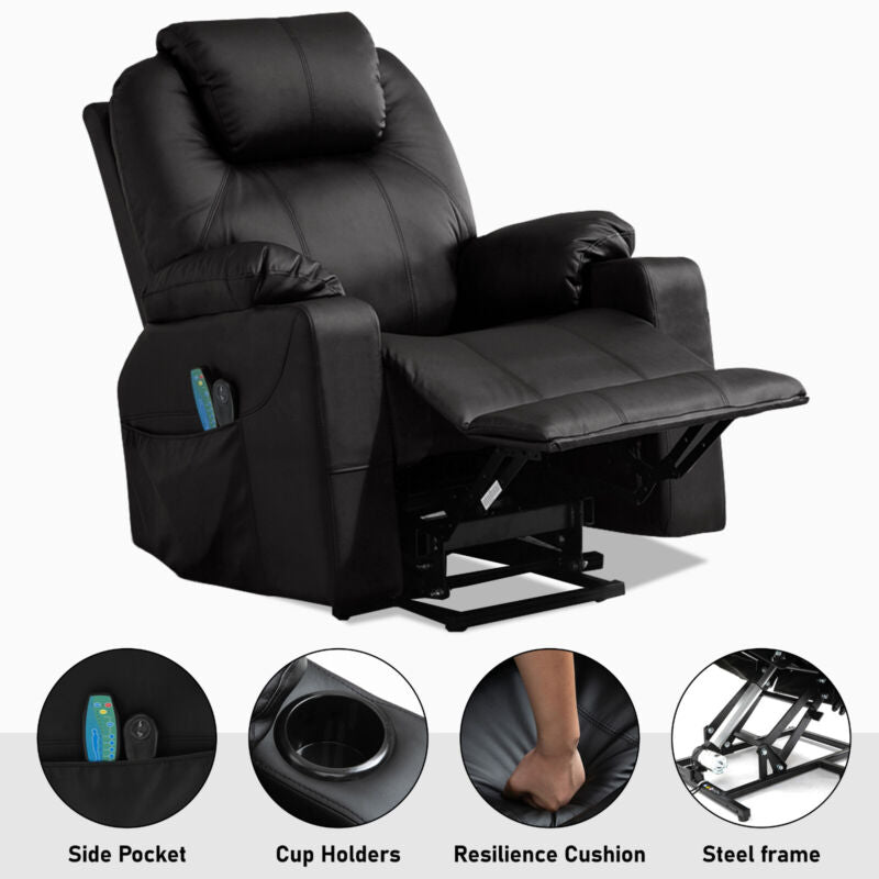 Riser & Recliner Armchair Leather 8 Point Electric Heated Massage Sofa Arm Chair