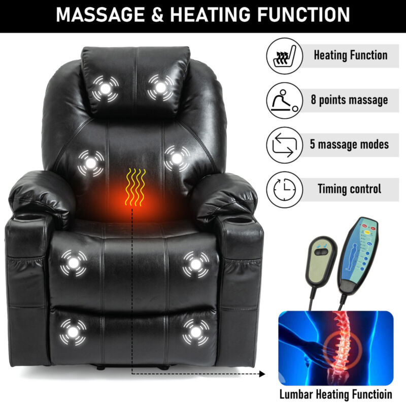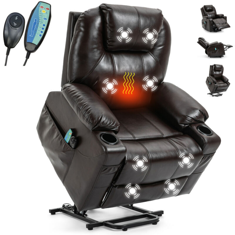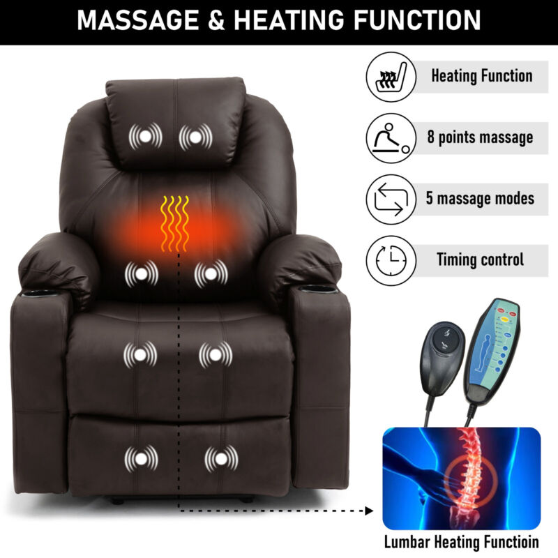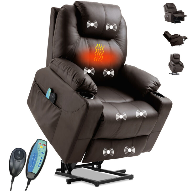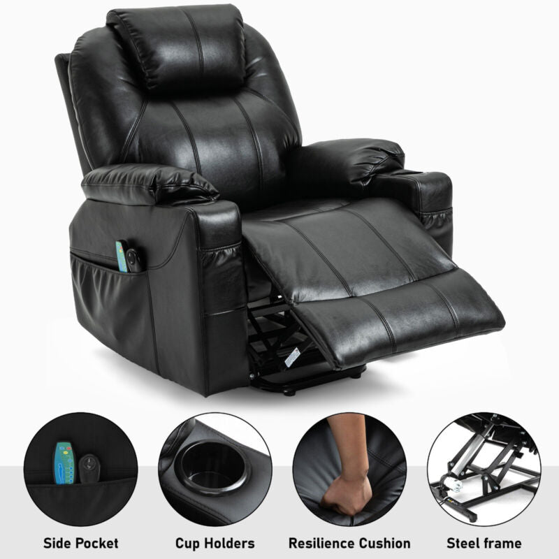 Riser & Recliner Armchair Leather 8 Point Electric Heated Massage Sofa Arm Chair