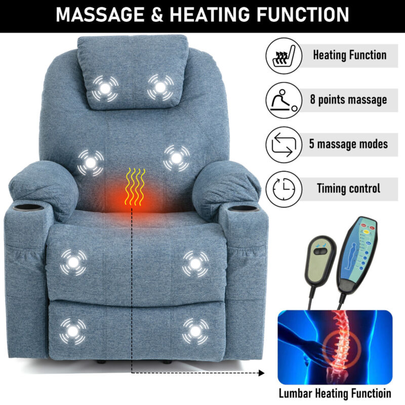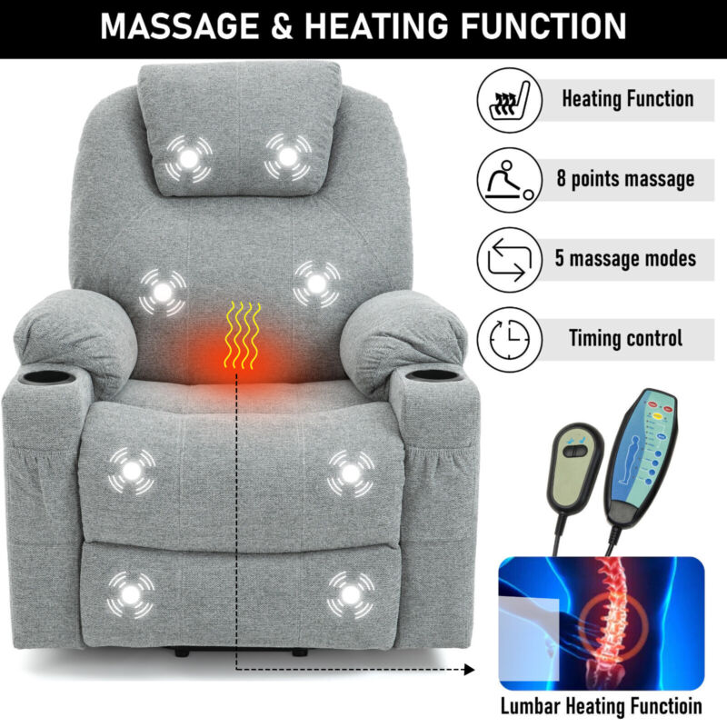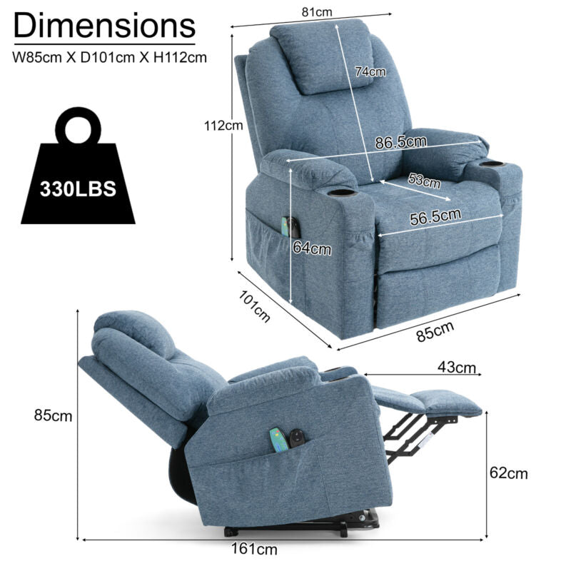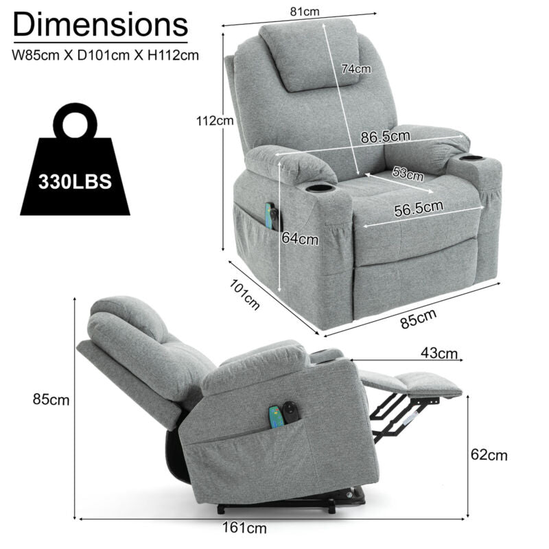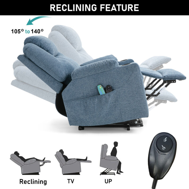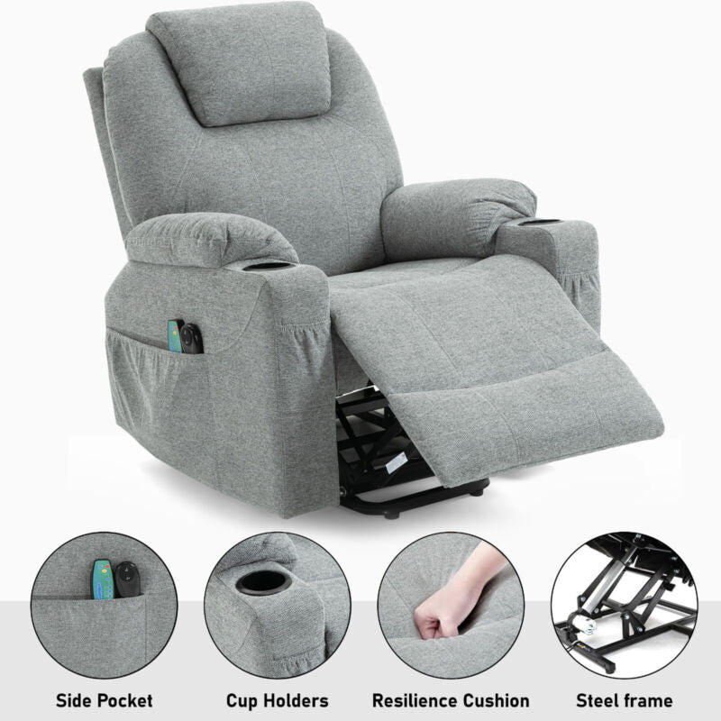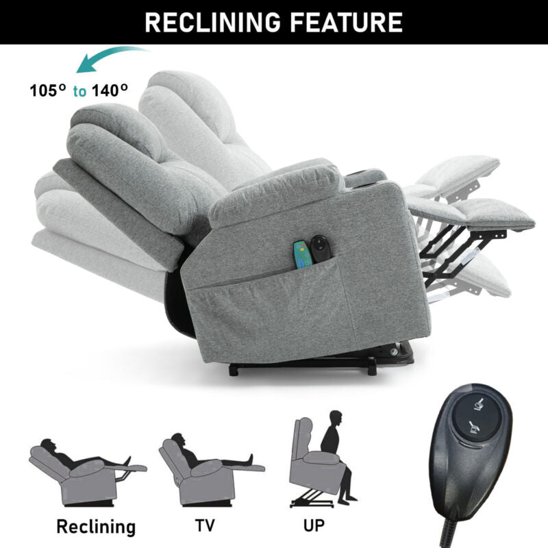Cup Holder, Electric Recliner, Massage Function, 8 Point Massager, Retractable Footrest, Side Pocket, Power Lift, VIbration, Single Motor, 105 - 140 ° Recliner
