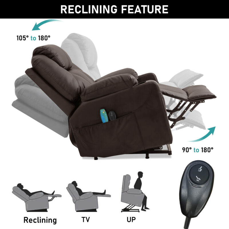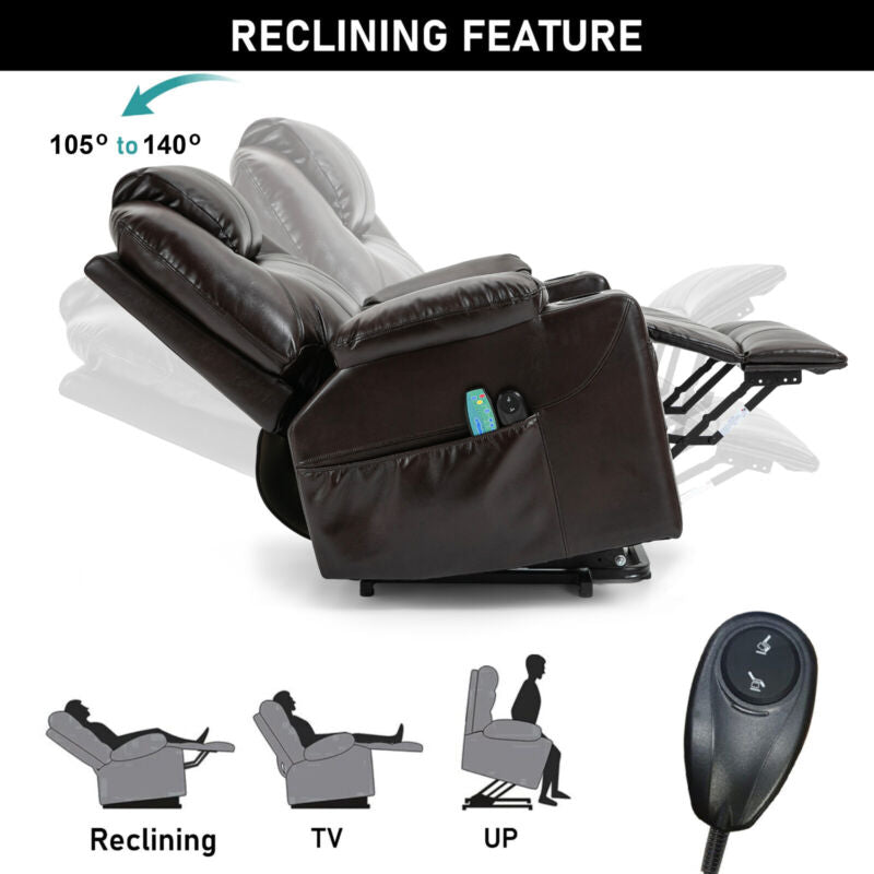 Features Cup Holder, Electric Recliner, Massage Function, 8 Point Massager, Retractable Footrest, Side Pocket, Power Lift, VIbration, Single Motor, 105 - 140 ° Recliner