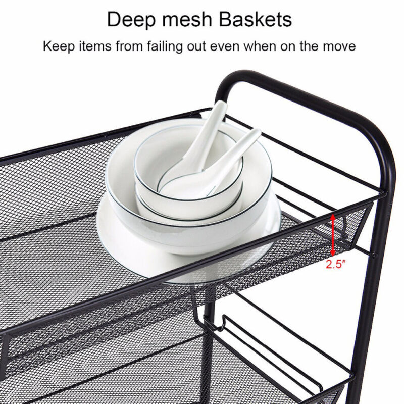 Rolling 5 Tier Storage Rack Metal Shelving Unit Kitchen Bathroom Organizer Cart