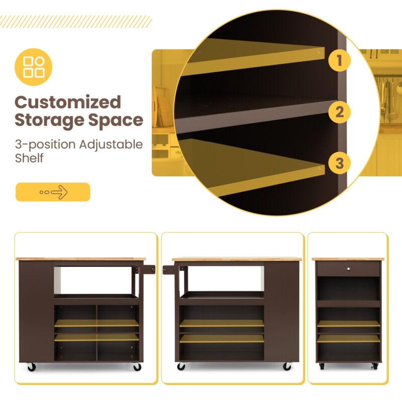 Rubber Wood Top, With 4 Adjustable Shelves, Drawer, With Spice Racks, Towel Rack