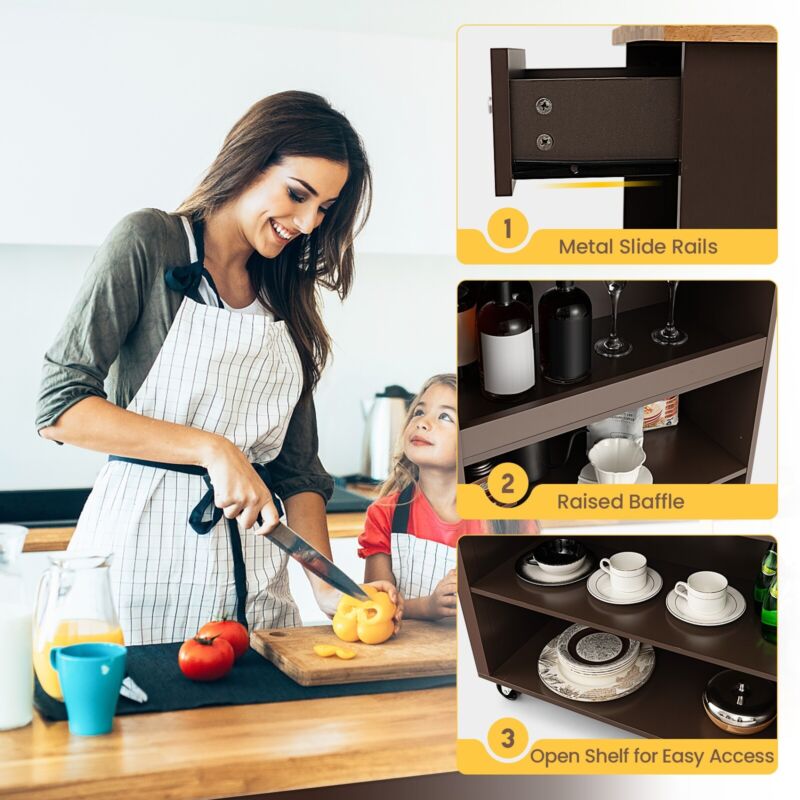 Rolling kitchen Island Mobile Serving Trolley Cart w/ Drawer and Towel Rack