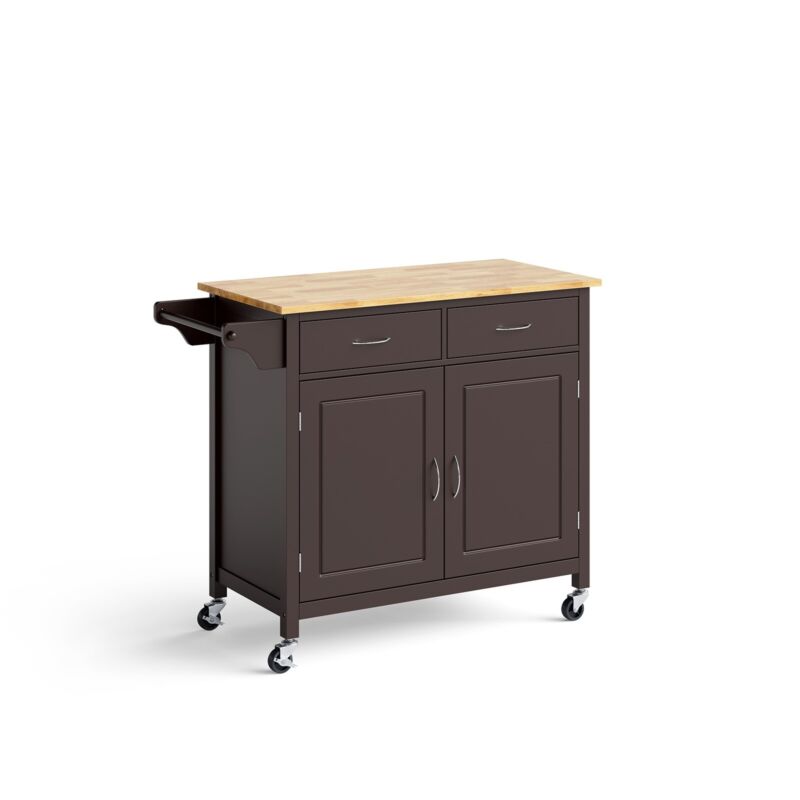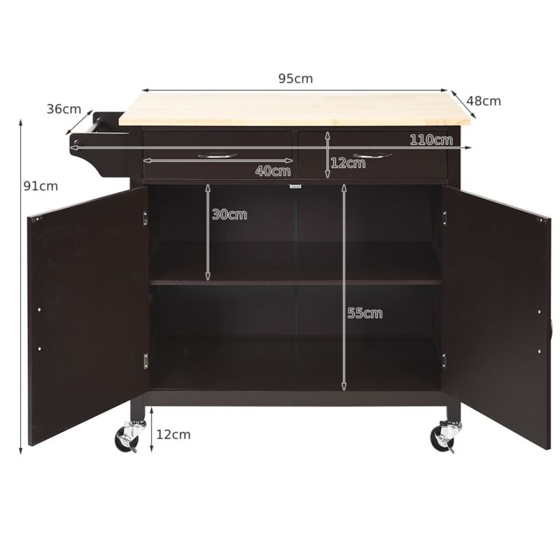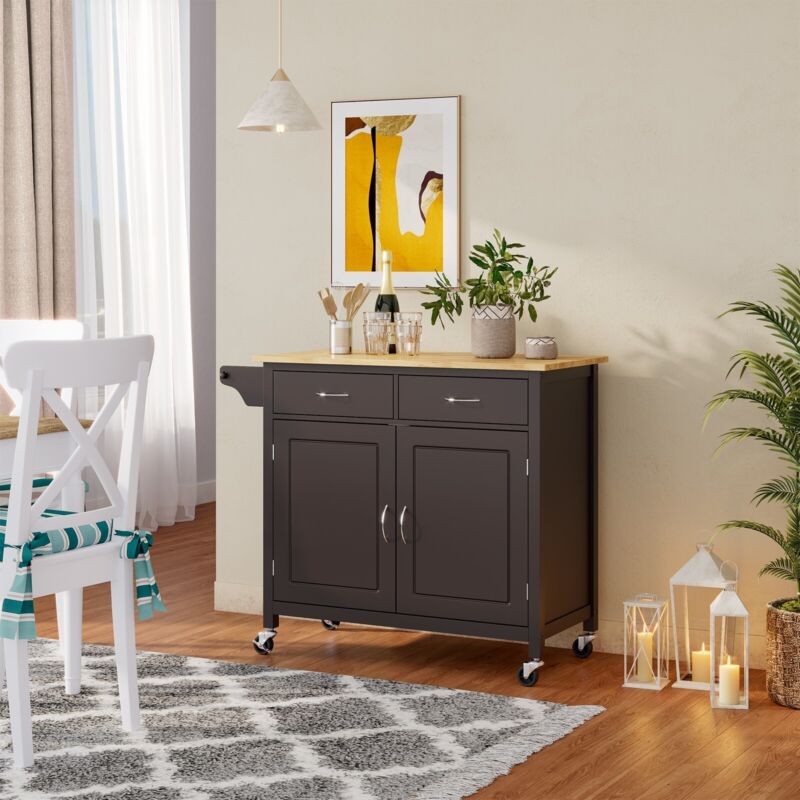 Rolling Kitchen Island w/ 2 Drawers Storage Trolley Utility Cart w/ Towel Rack