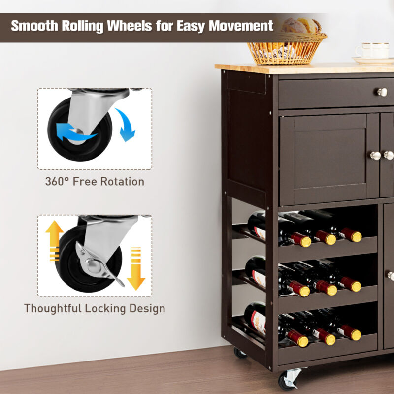 Rolling Kitchen Storage Trolley Cart Cupboard Island Cabinet 3 Tier Wine Rack