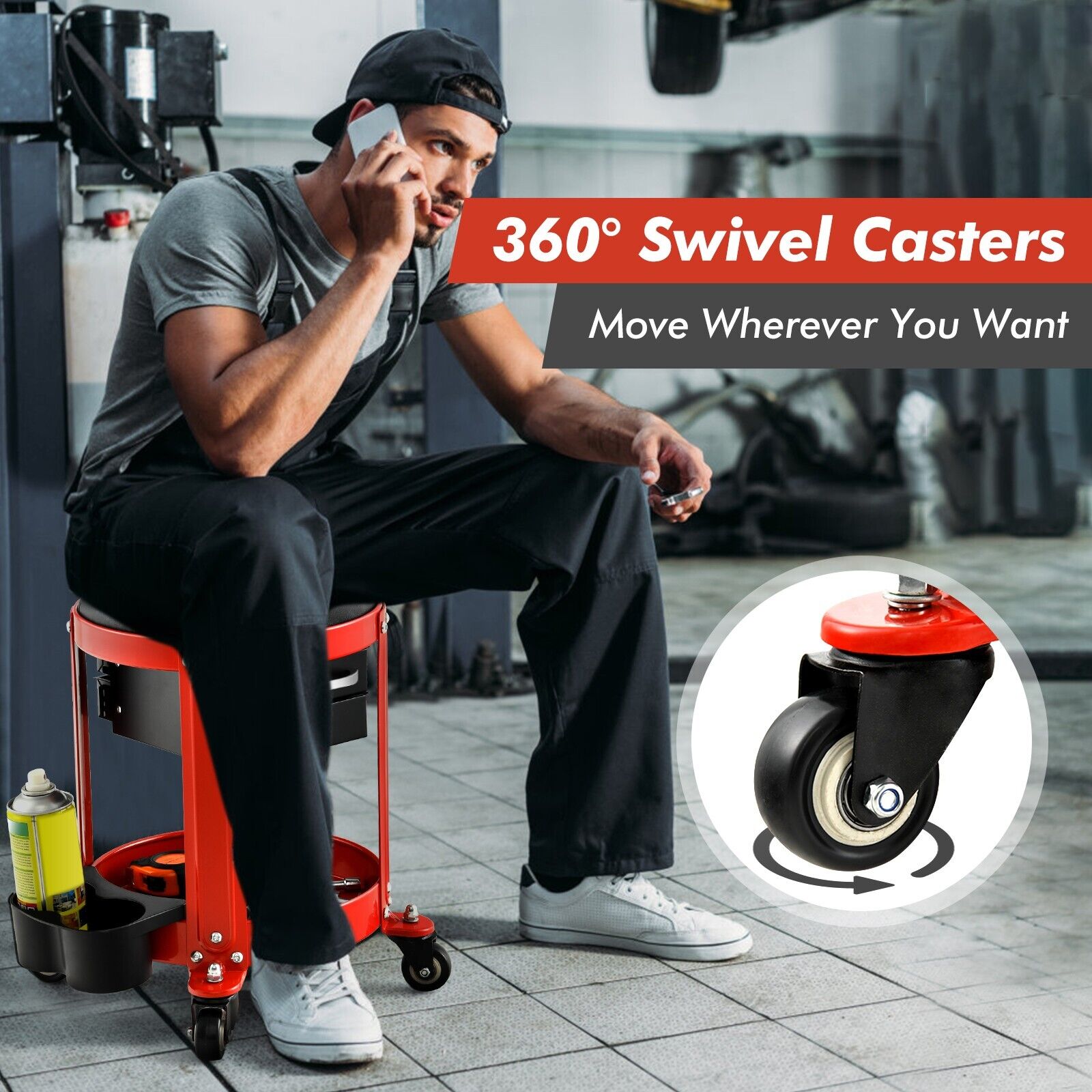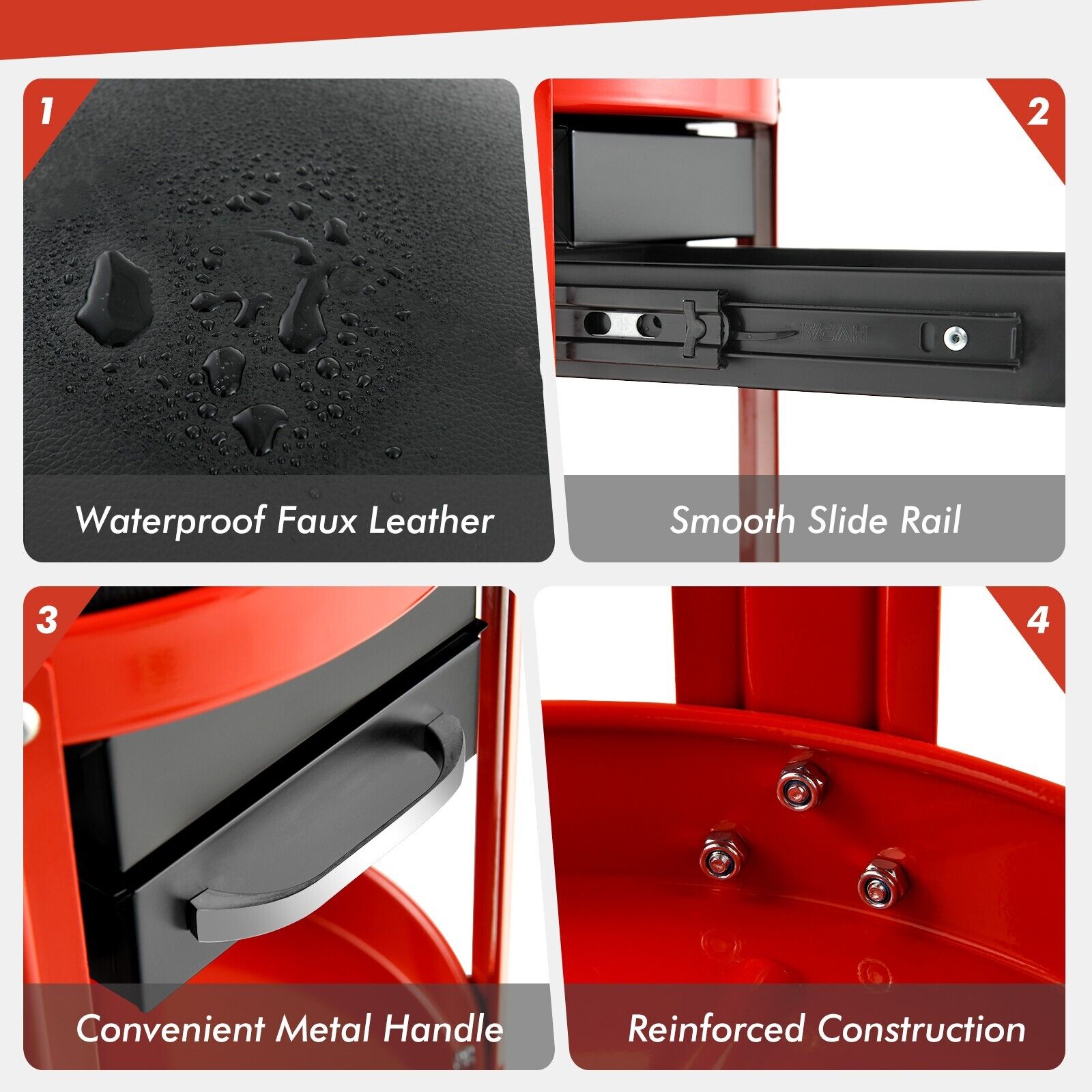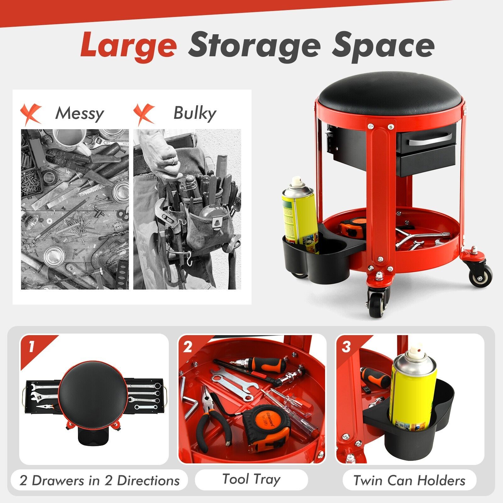Rolling Workshop Creeper Seat Mechanic Stool W/ Removable Padded Seat 2 Drawers