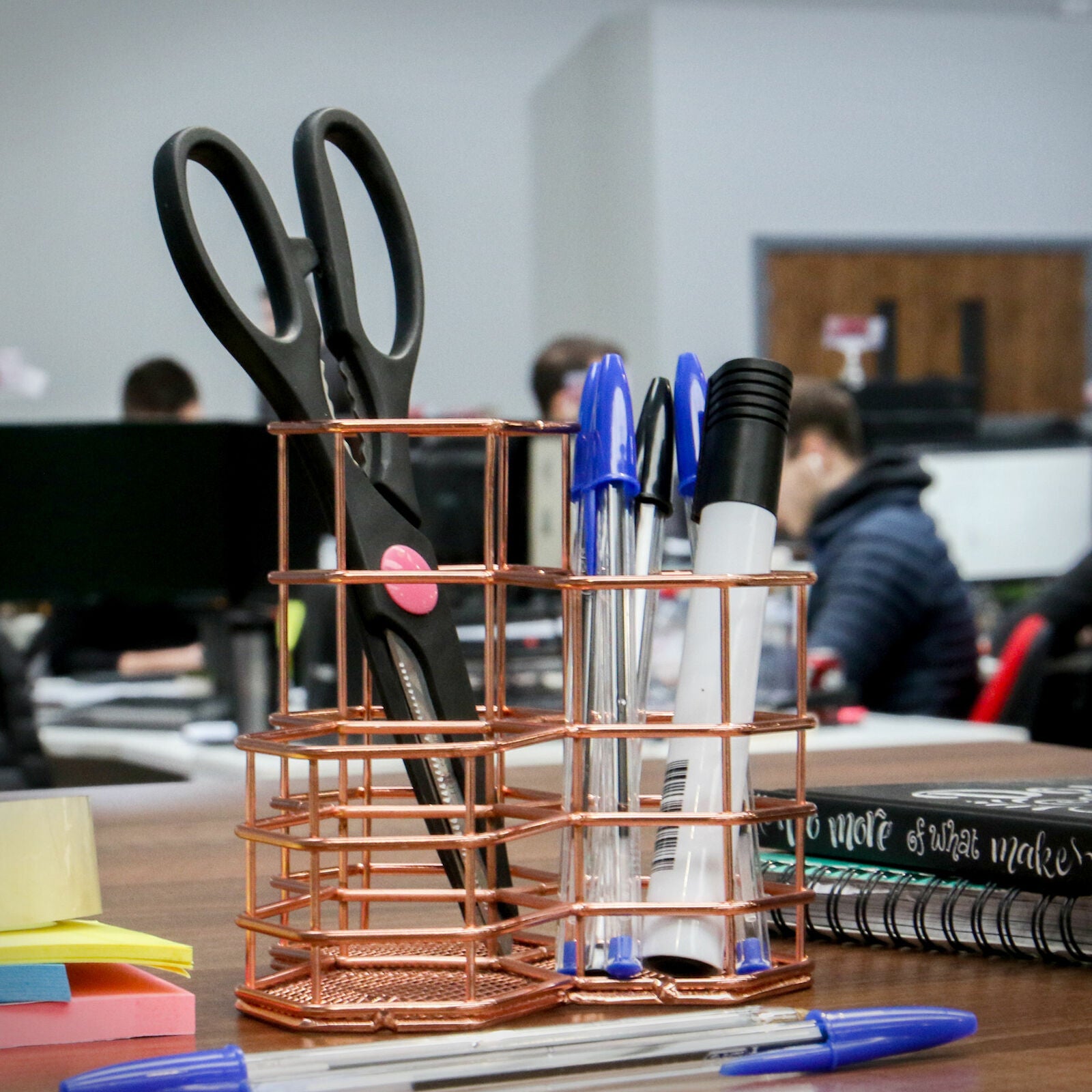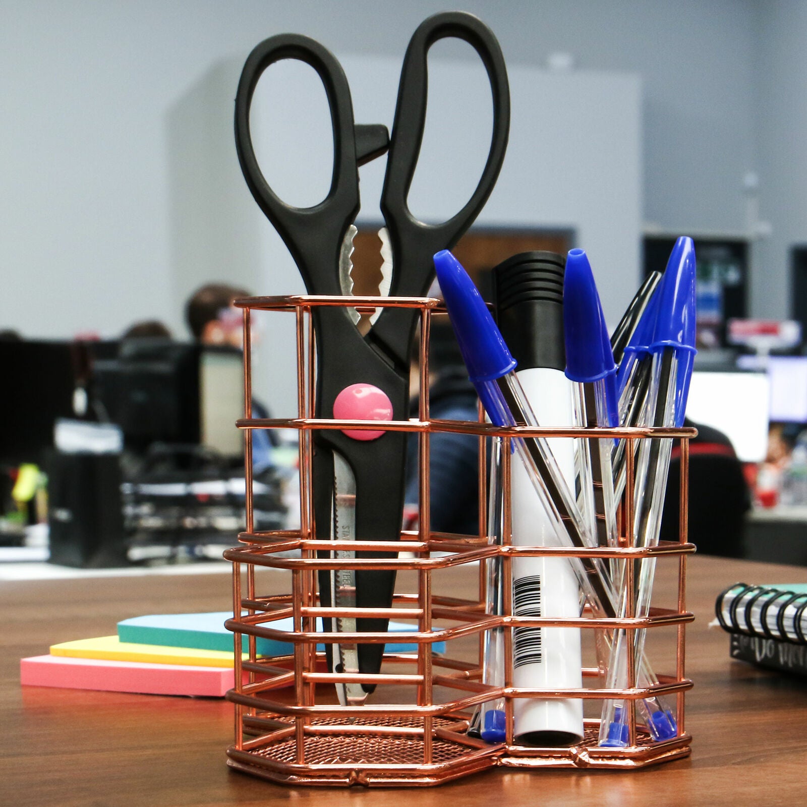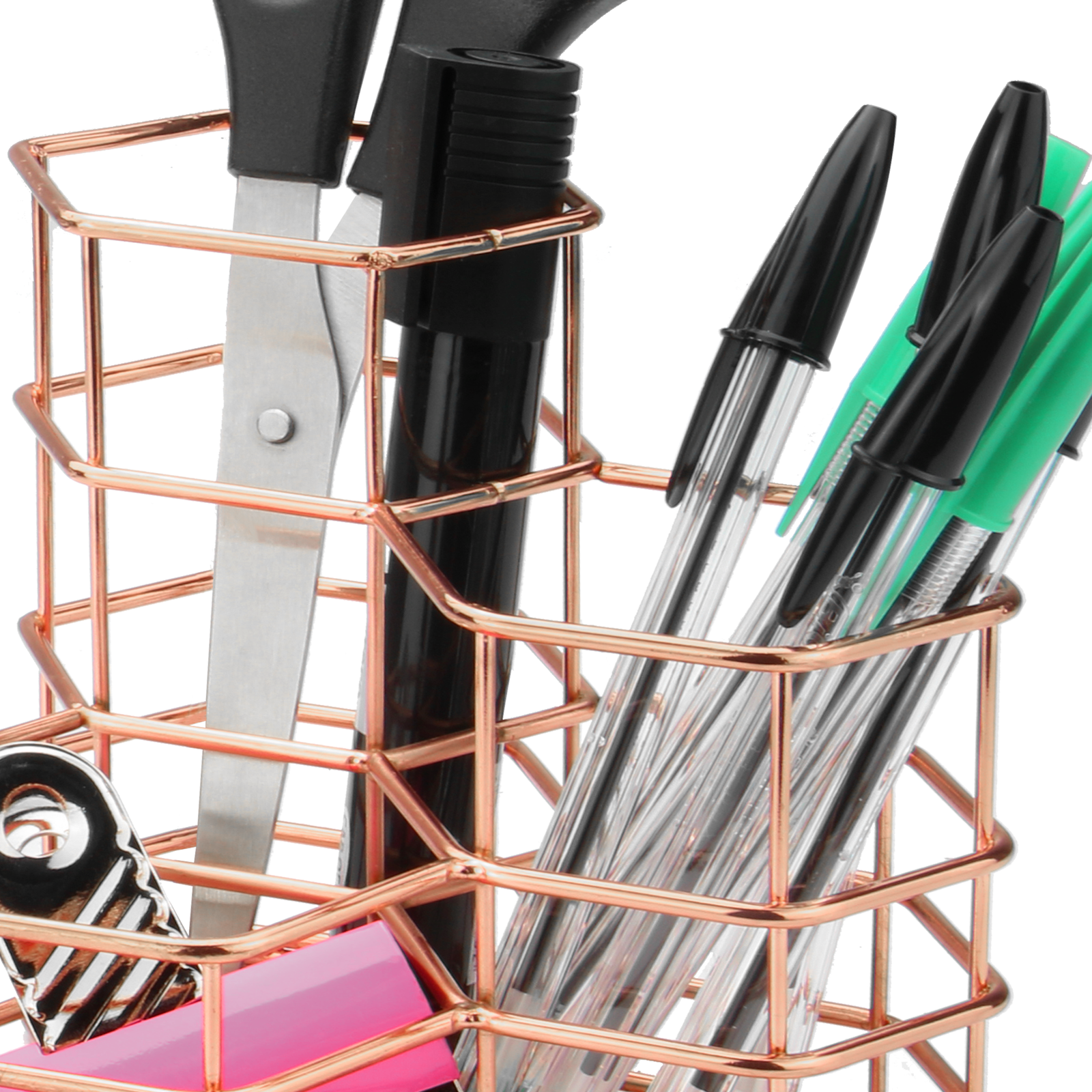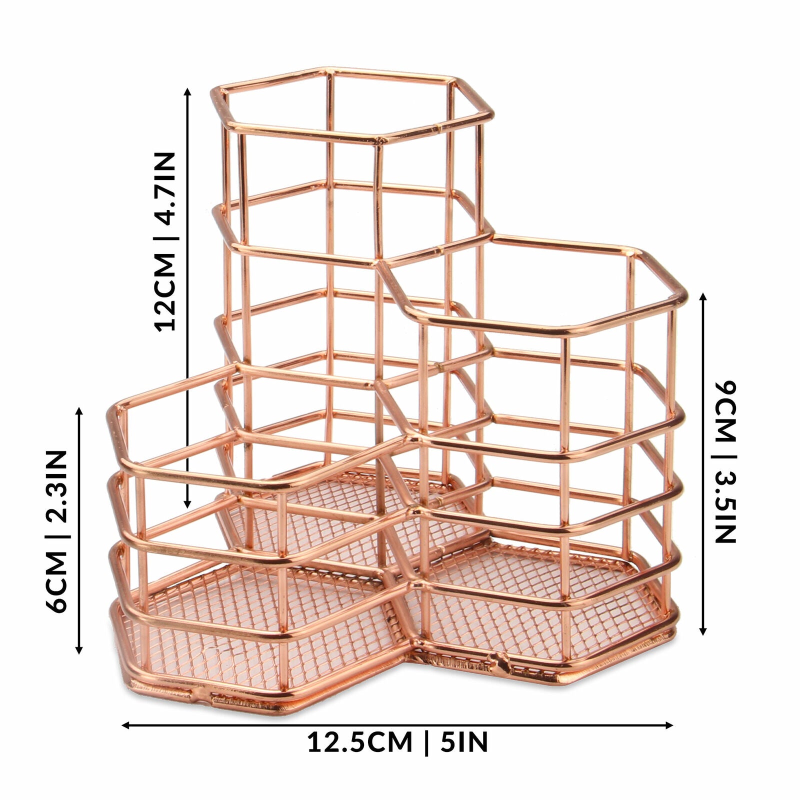 Rose Gold Hexagonal Desk Tidy Office & Makeup Organiser Triple Holder M&W