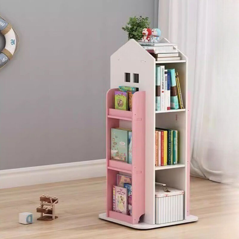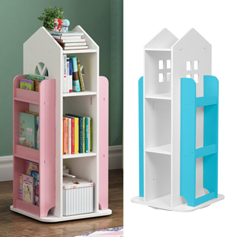 Rotating Childrens Bookshelf Kids Toy Organizer Rack Bookcase Display Cabinet