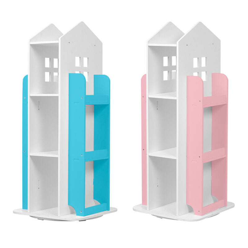 Rotating Childrens Bookshelf Kids Toy Organizer Rack Bookcase Display Cabinet