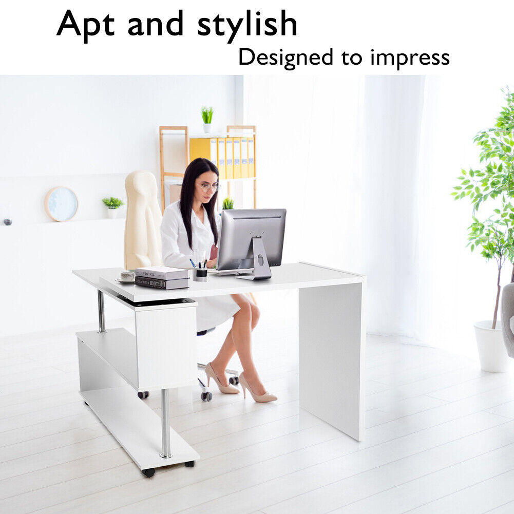 Rotating Corner Computer Desk L-shaped PC Table Workstation Home Office Study