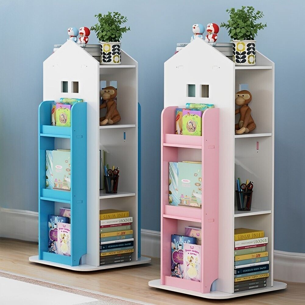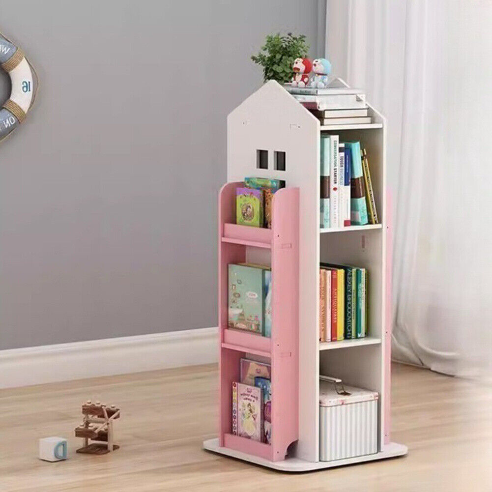 Rotating Kids Childrens Book Shelf MDF Storage Rack Organizer Bookcase Bookshelf