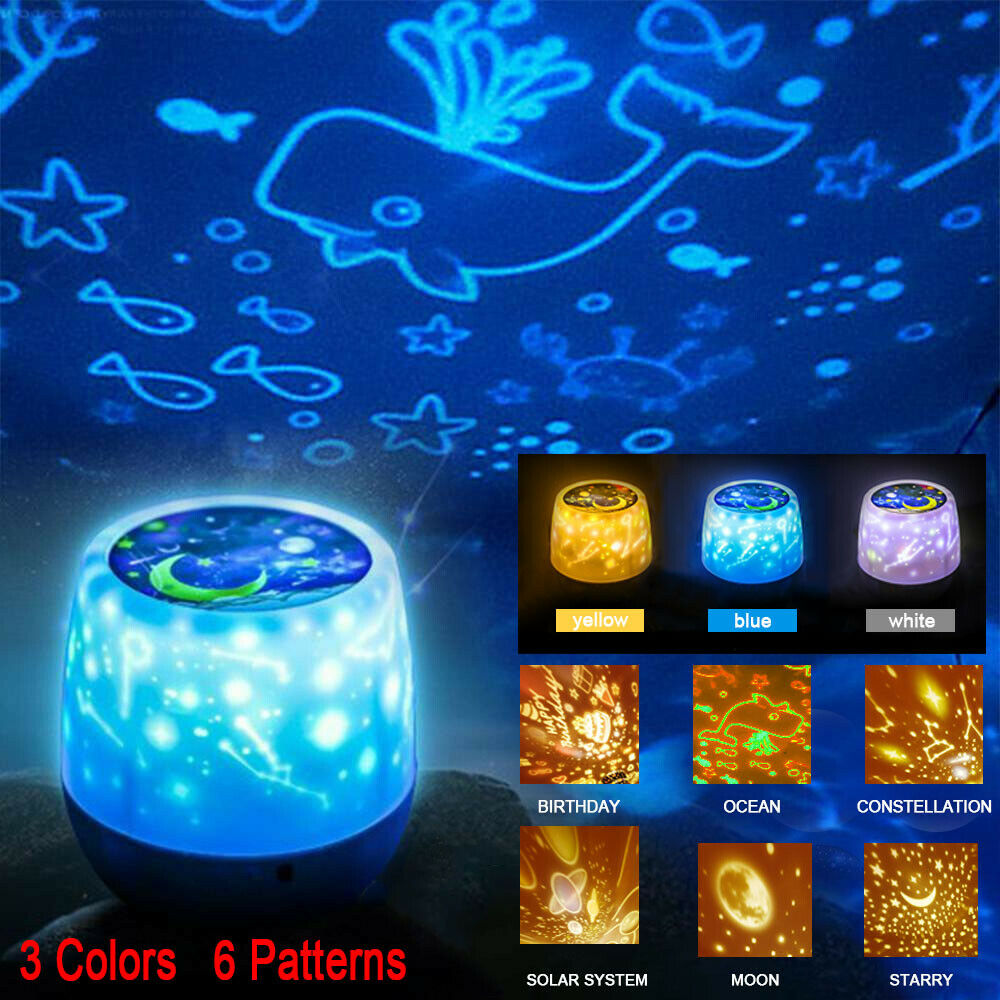 Rotating LED Light Projector Star Moon Sky Baby Kids Night Mood Lamp Xmas UKA