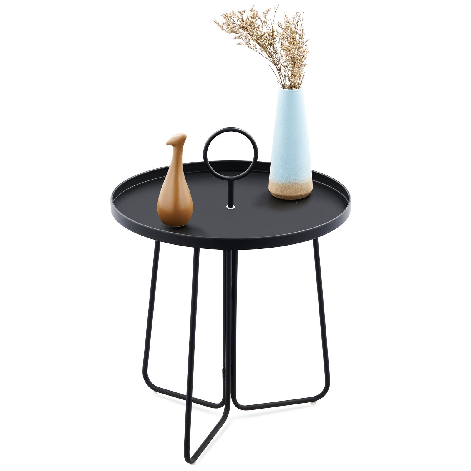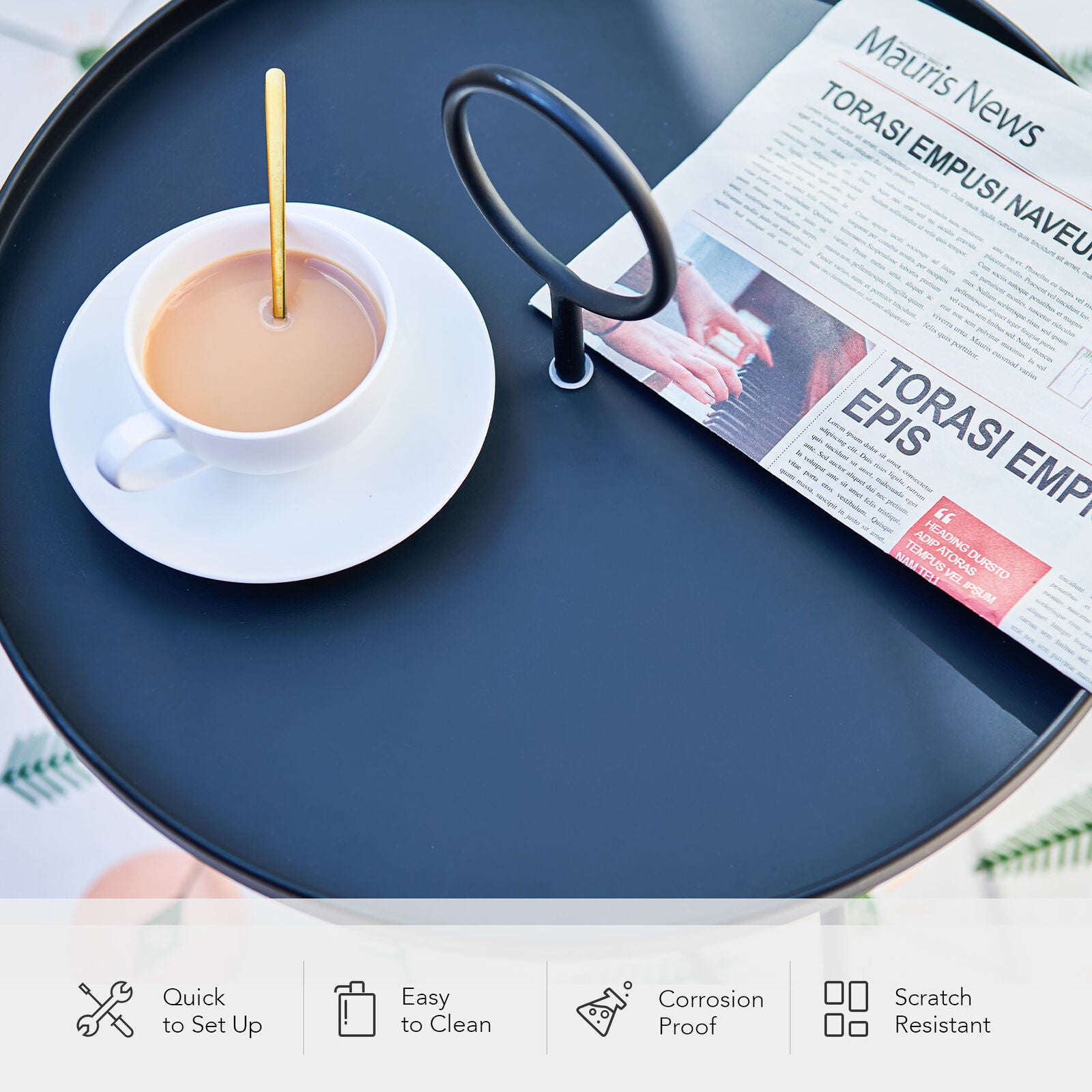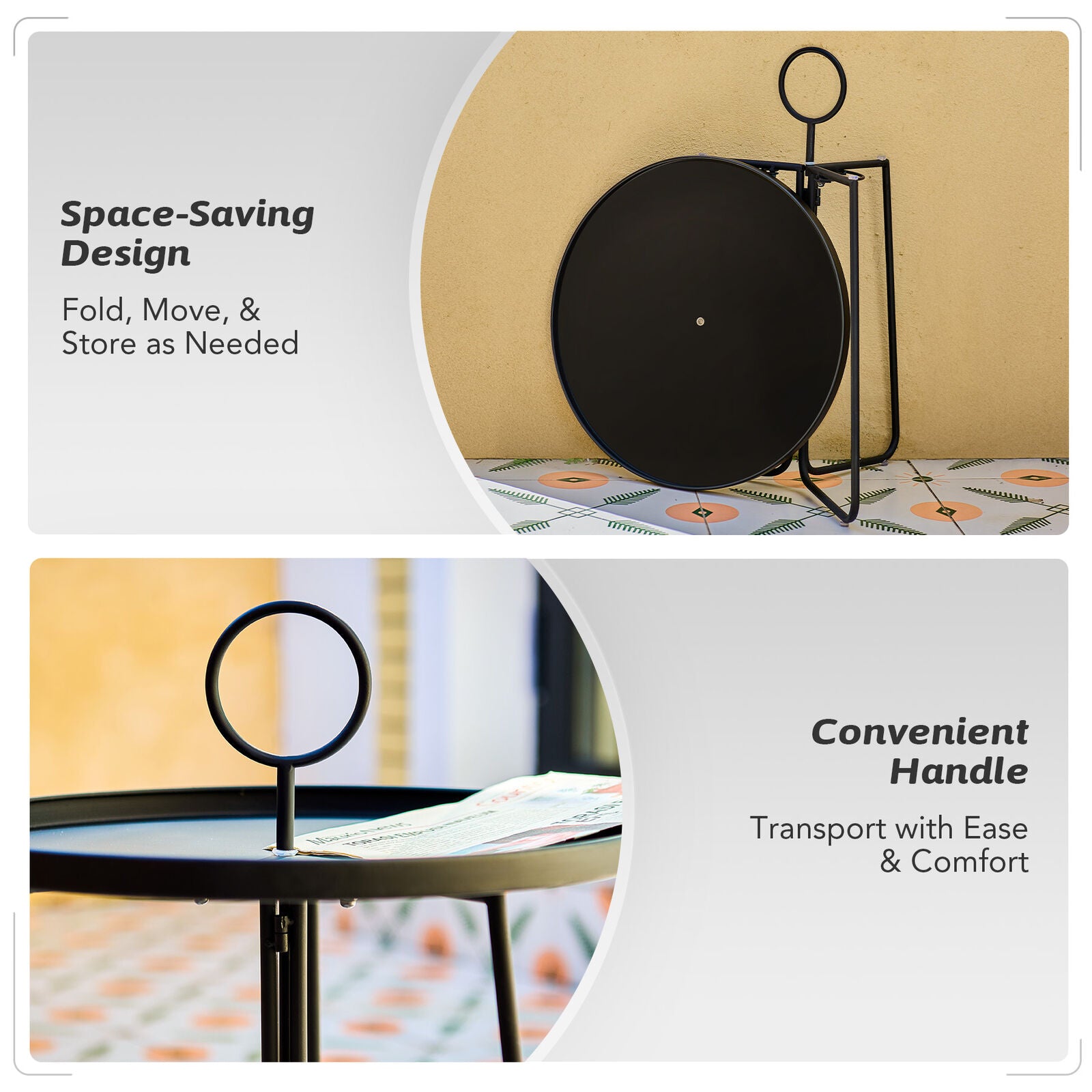 Round Coffee Table 42cm Foldable End Small Bedside Table w Handle and Steel Base