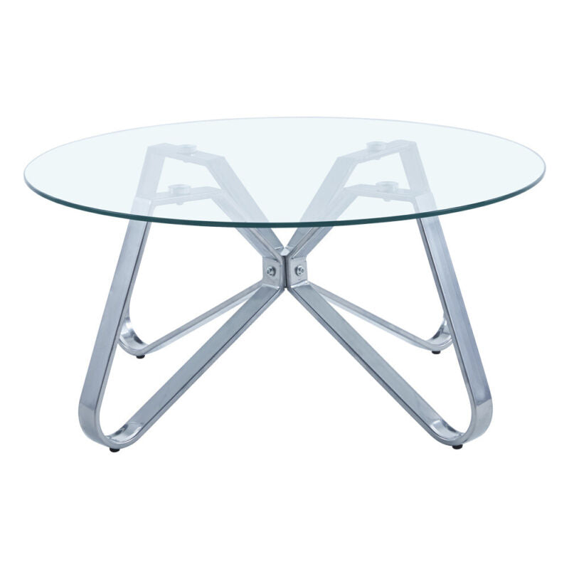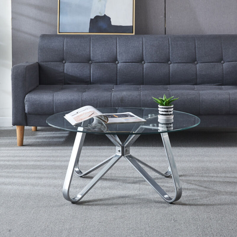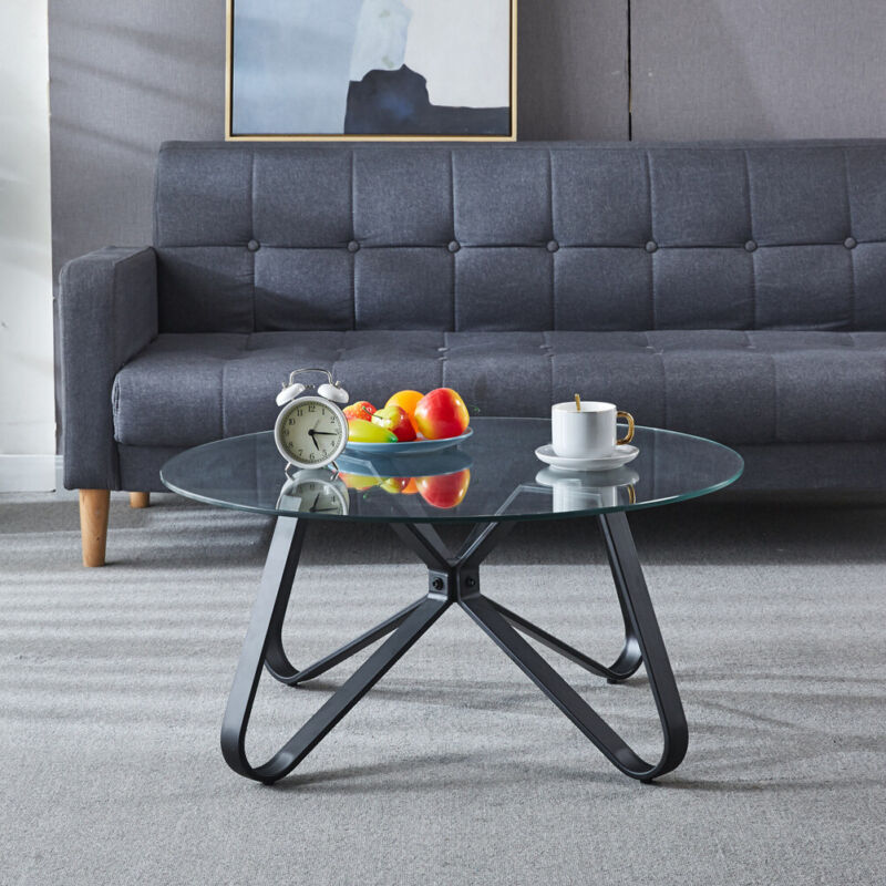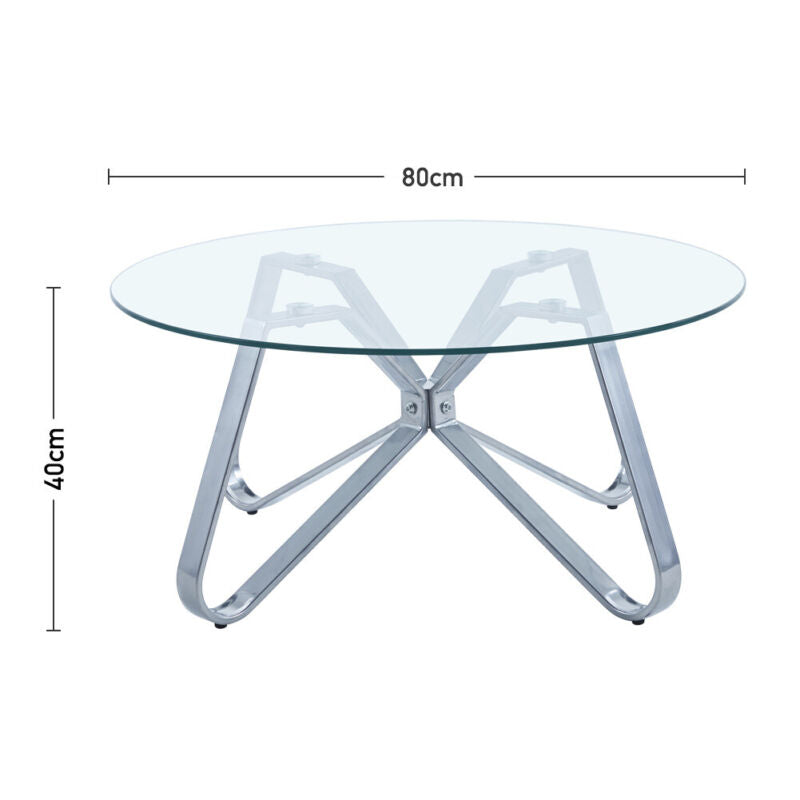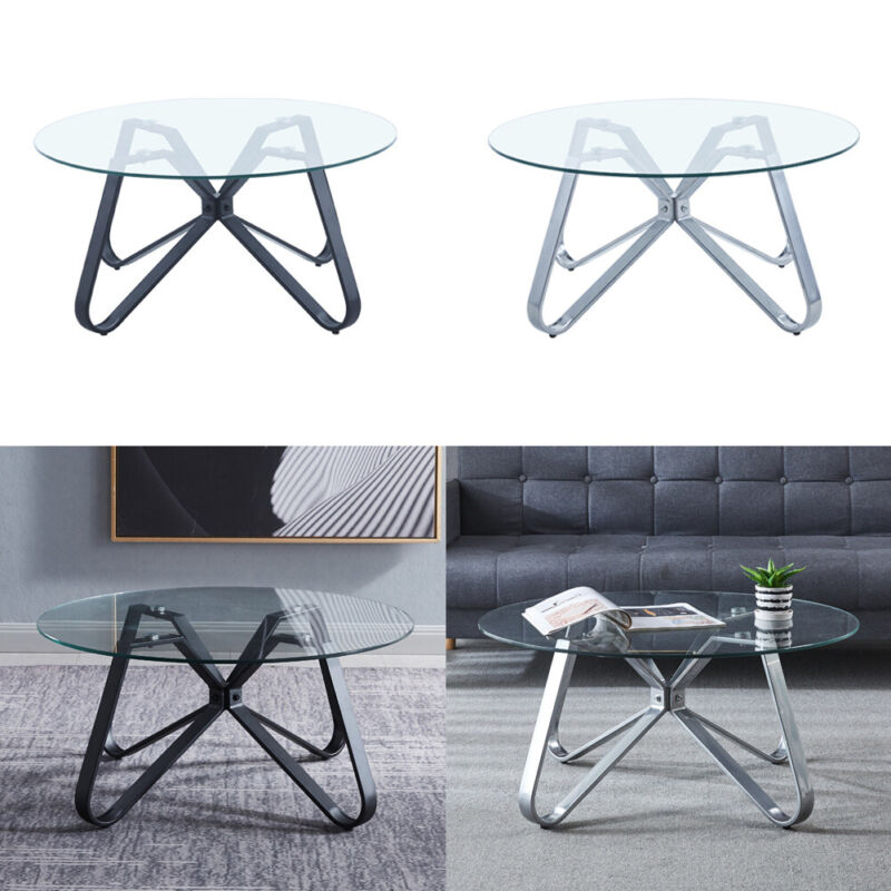 Round Coffee Table Modern 80cm Living Room Glass Top Accent Table Home Furniture