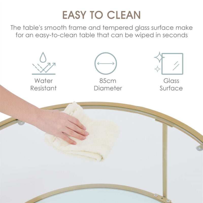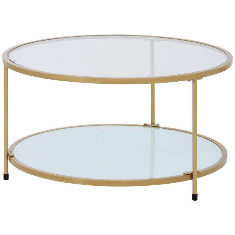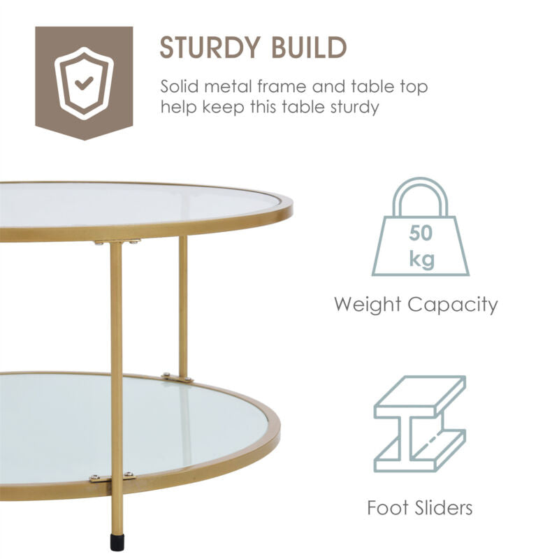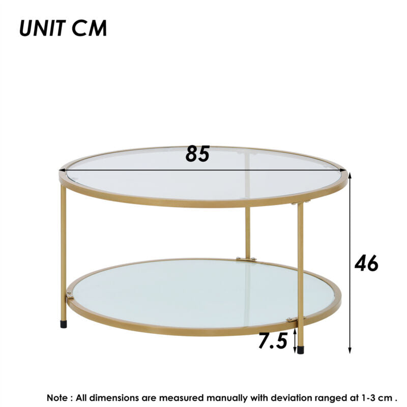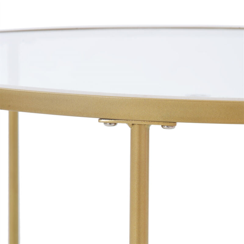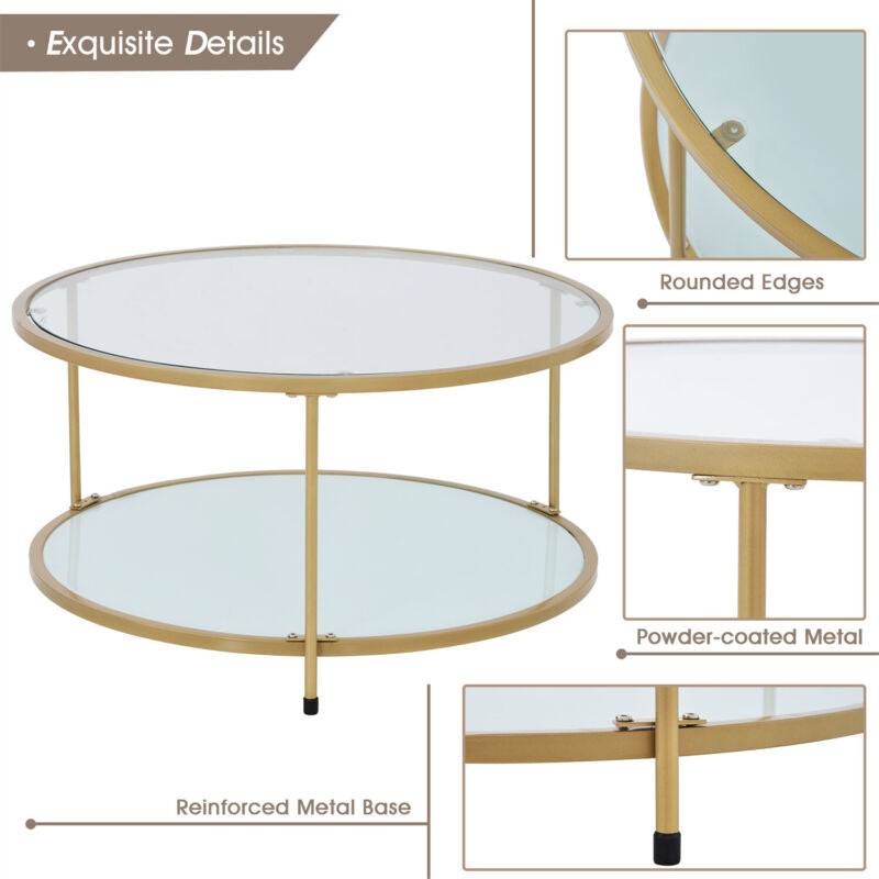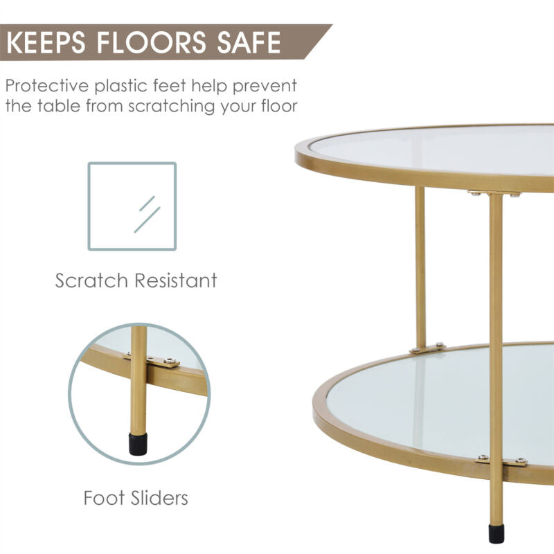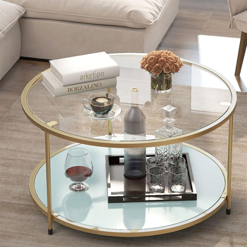 Round Coffee Table Tempered Glass Transparent Sofa Side Table Living Room Gold