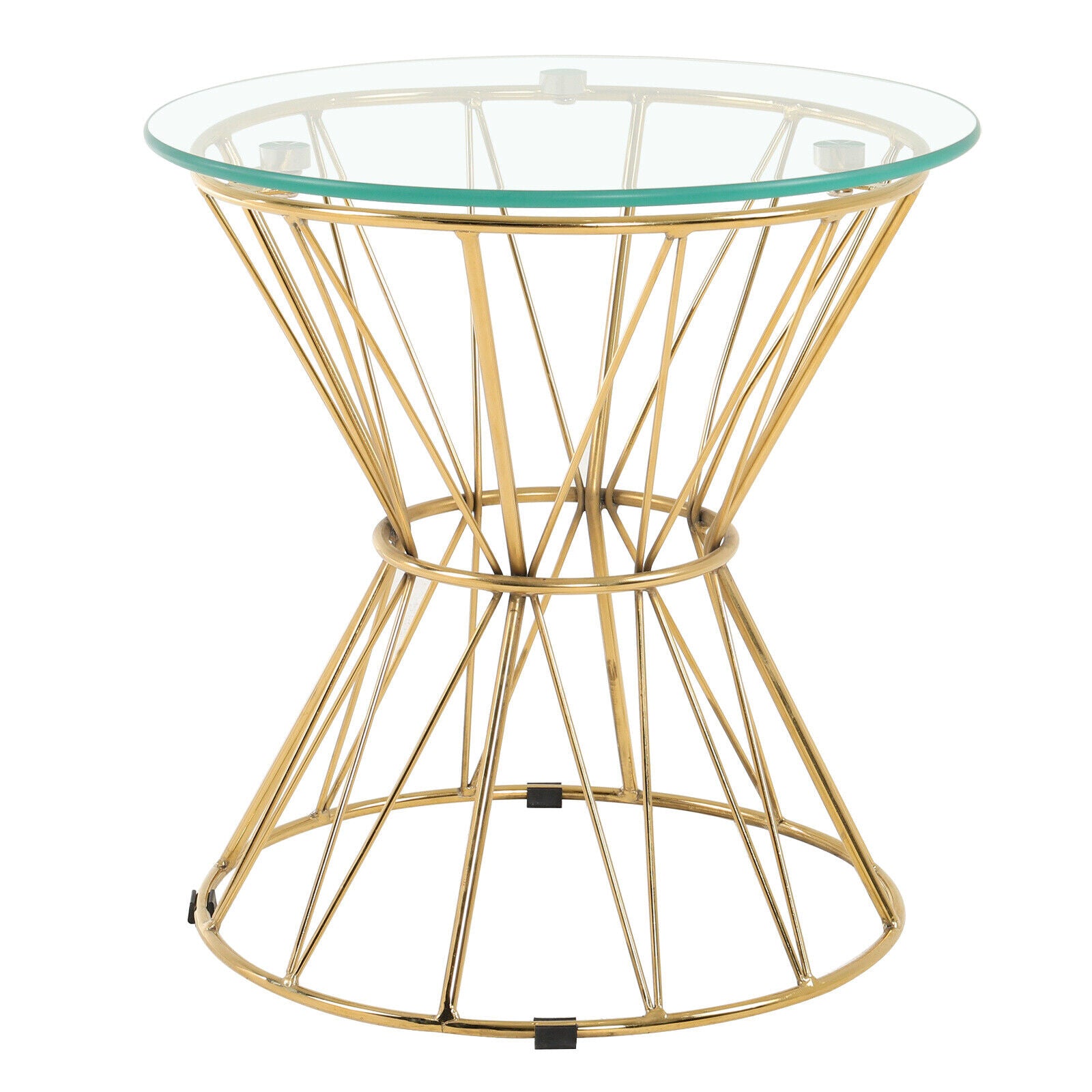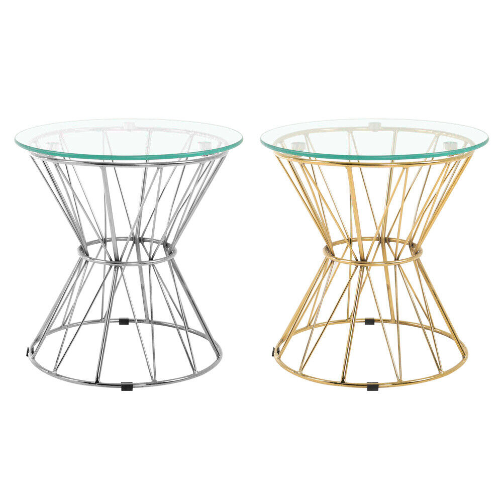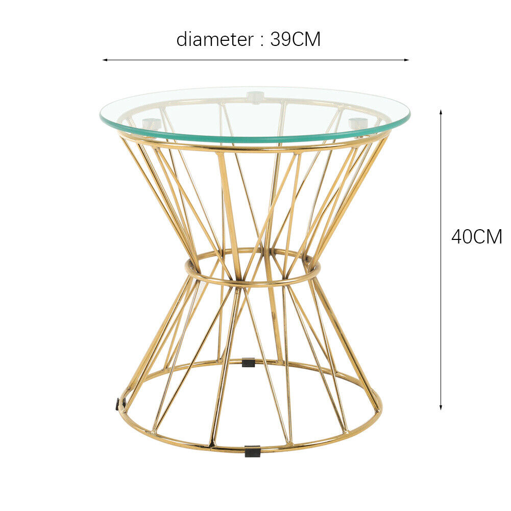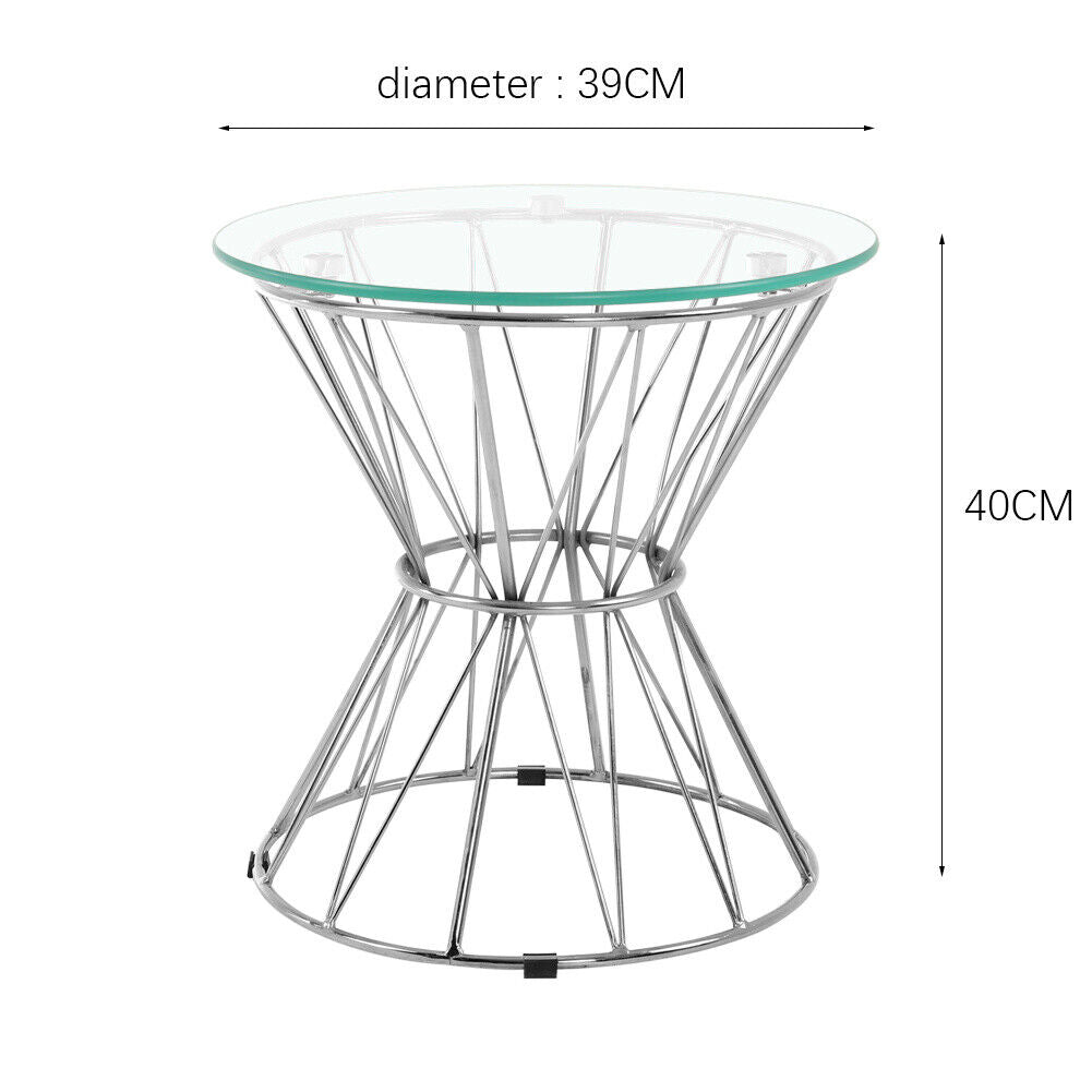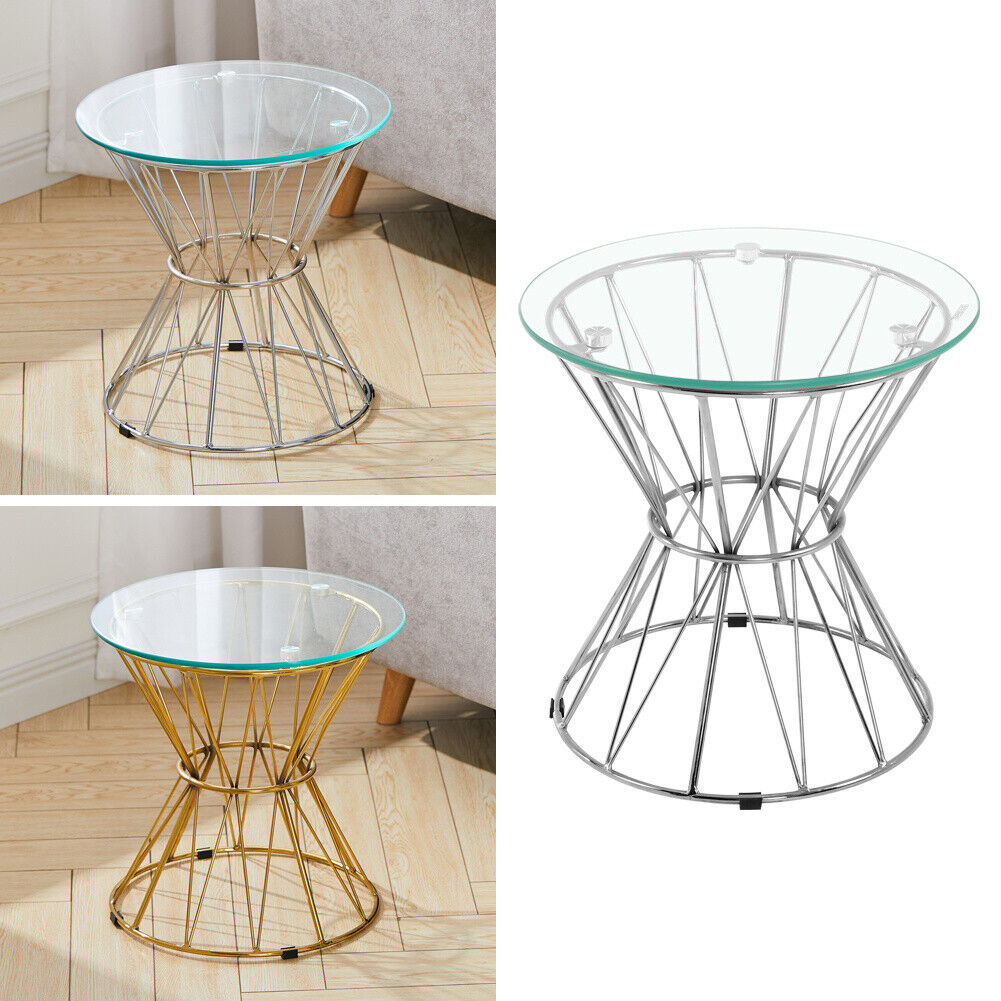 Round Coffee Table with Clear Tempered Glass Top Sofa Side End Table Home Office