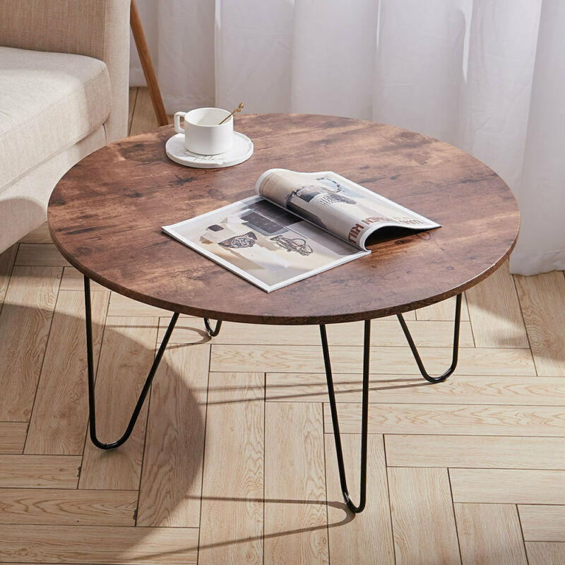 Round Coffee Table Wooden Metal Sofa Side Tea Table Living Room Home Furniture