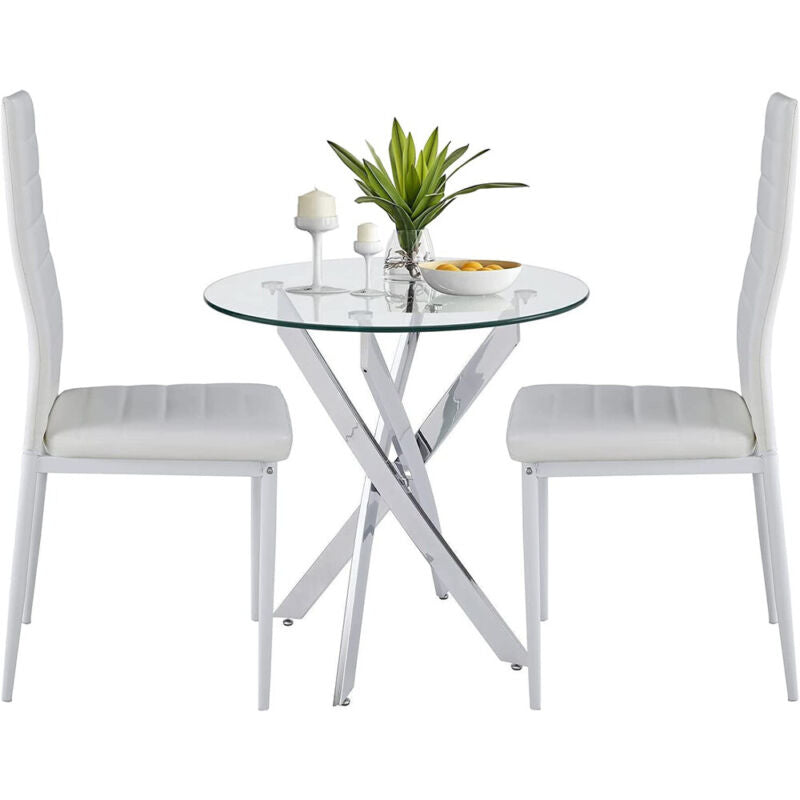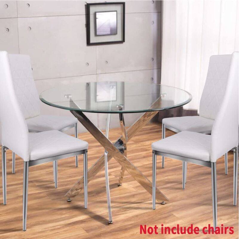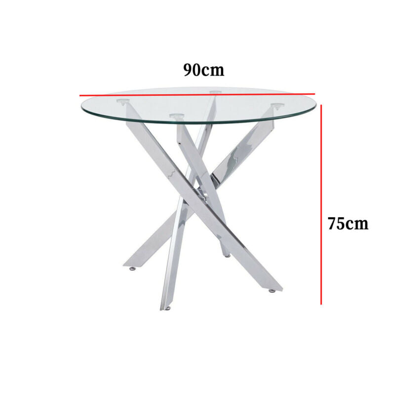 Round Dining Room Table With Silver Chrome Legs Kitchen Dining Living Room 90 cm