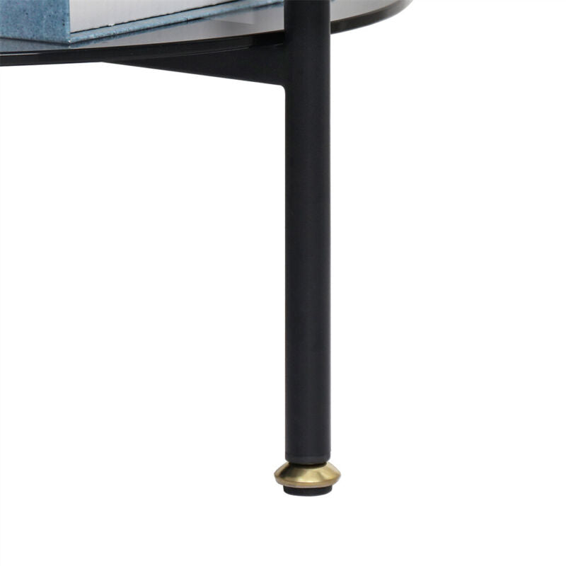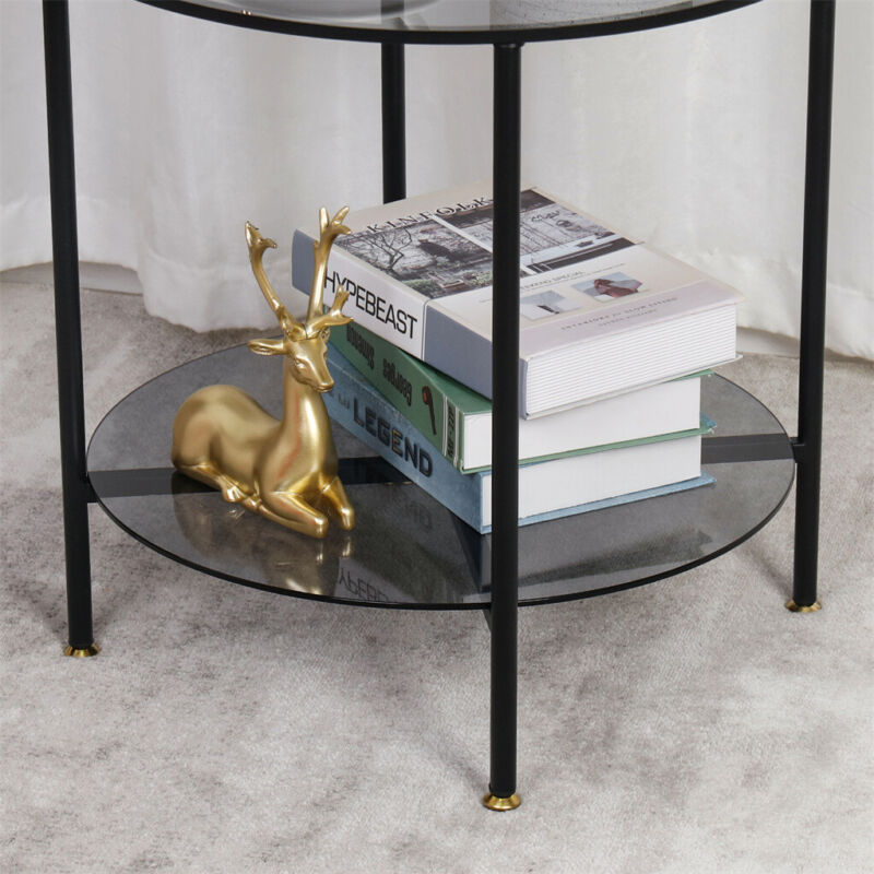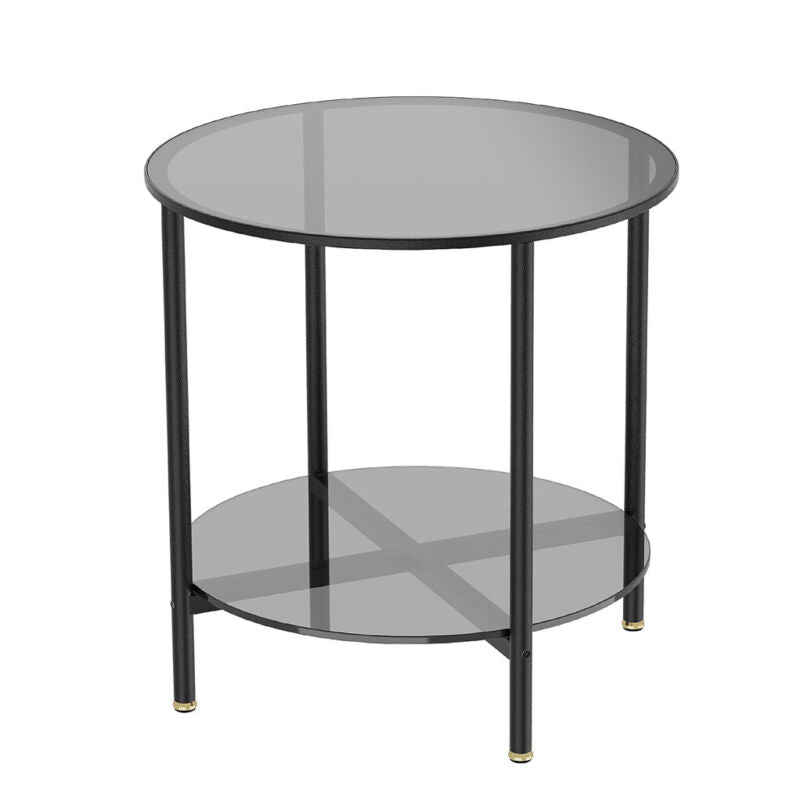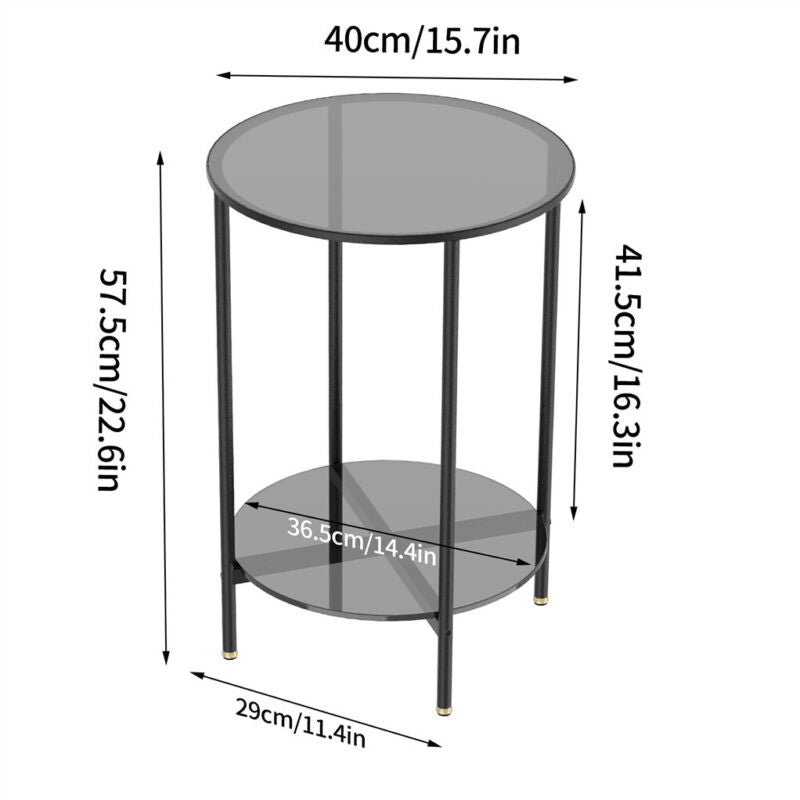 Round End Table Tempered Glass Round Side Table with Black Metal Frame Balcony