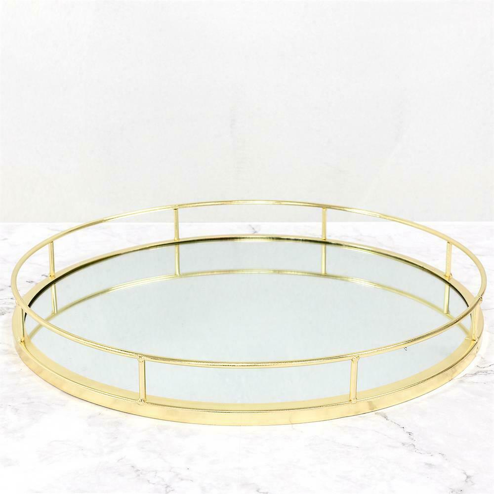 Round Gold mirror candle tray plate wedding table decorative mirror tray 40 CM