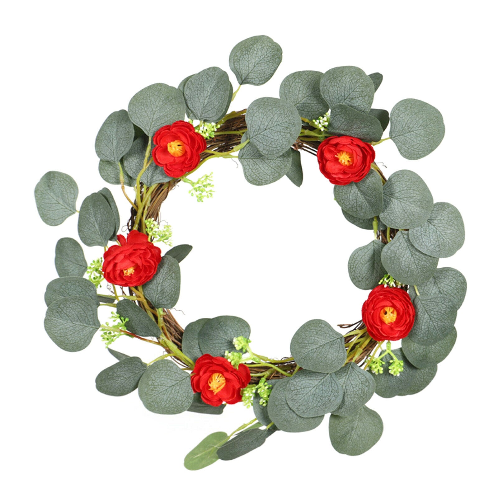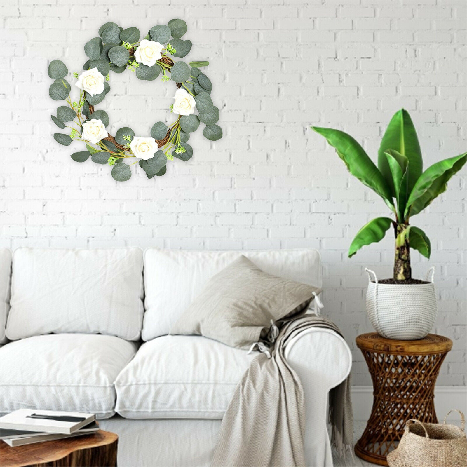 Round Leaf Eucalyptus Vine Ring Wall Hanging Natural Artificial Flower Garland