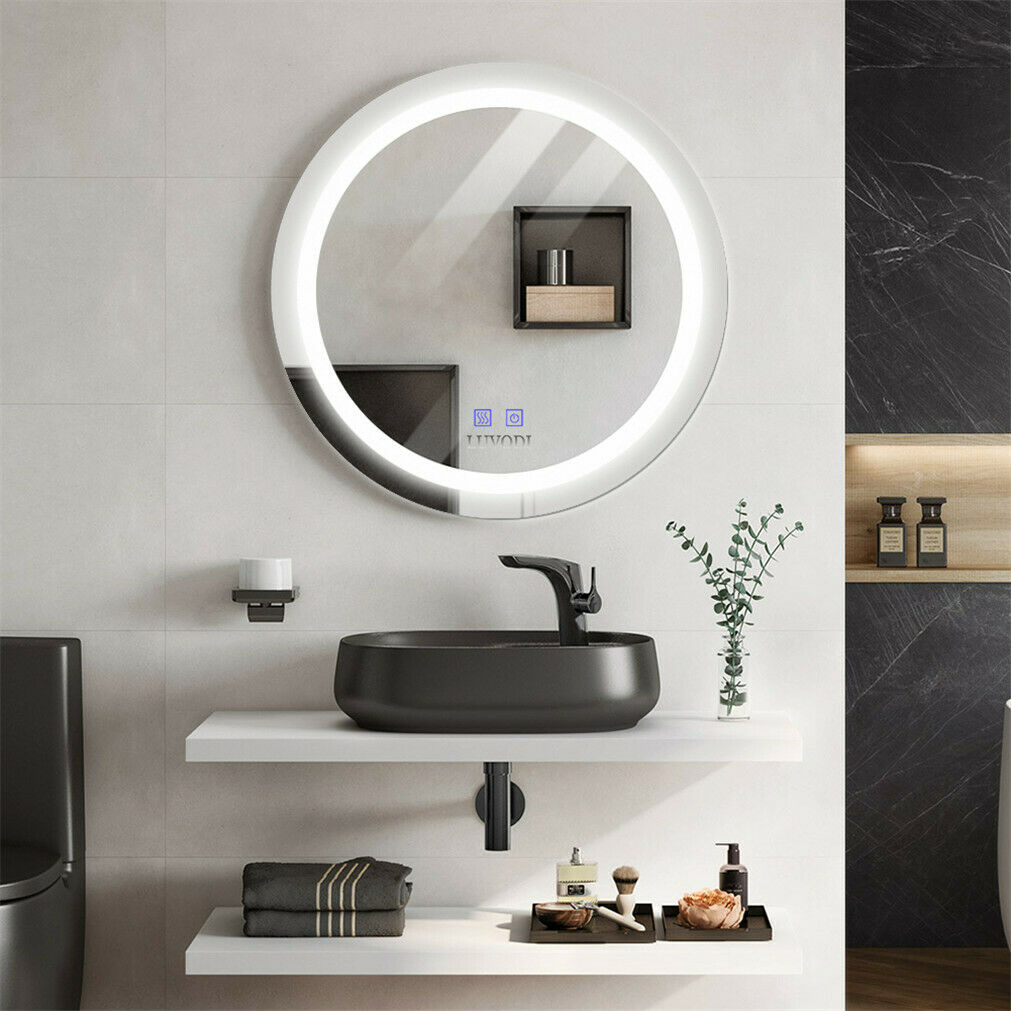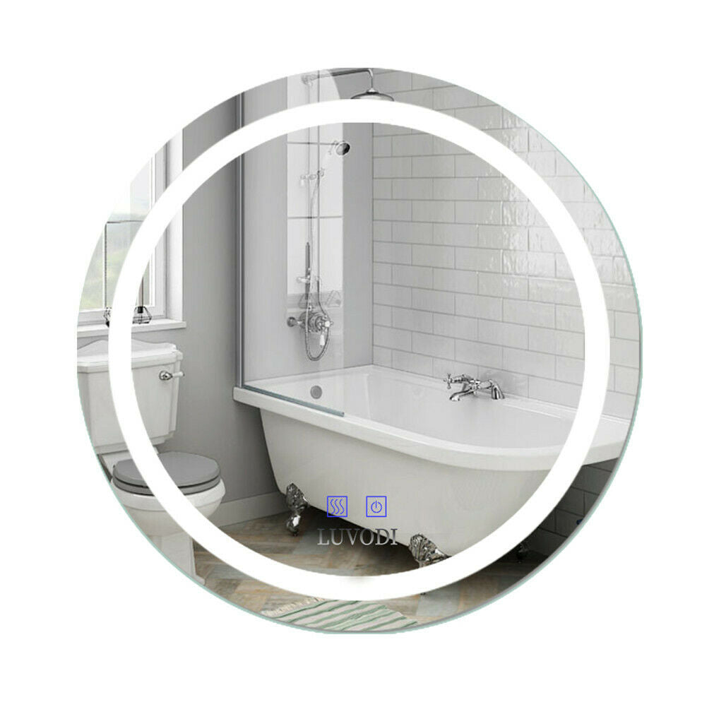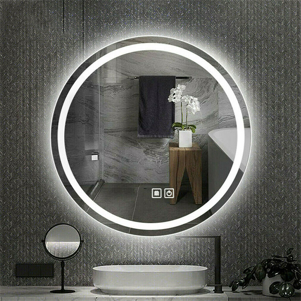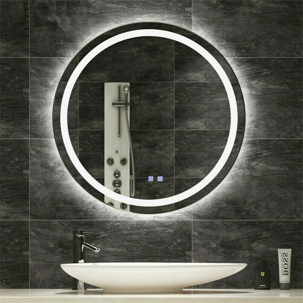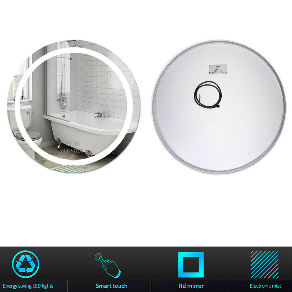 Round LED Bathroom Mirror Demister w Warm/White Lights Anti-fog IP44 600x600mm