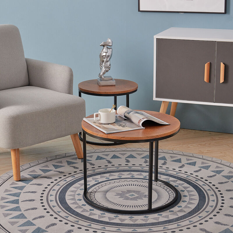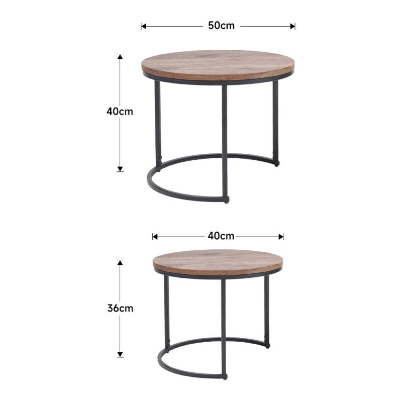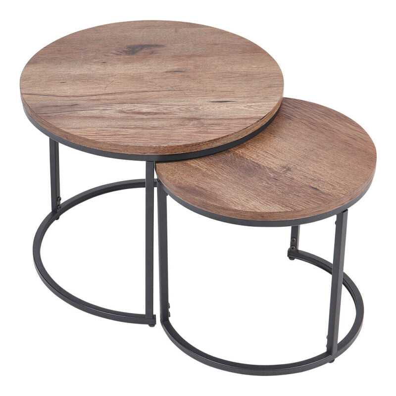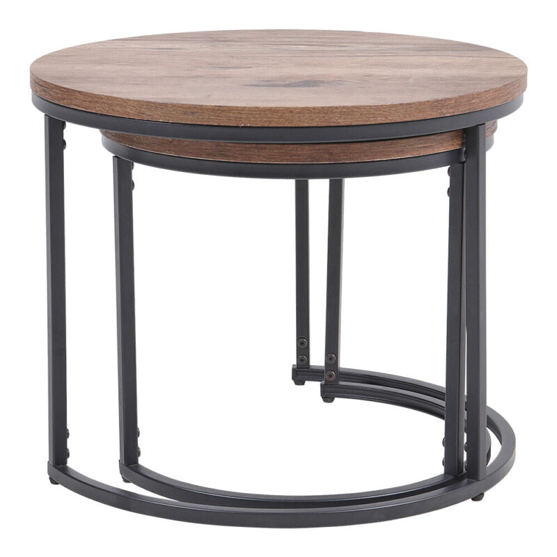 Round Nest of Tables Industrial Nesting Table Set of 2 Coffee End Side Stand