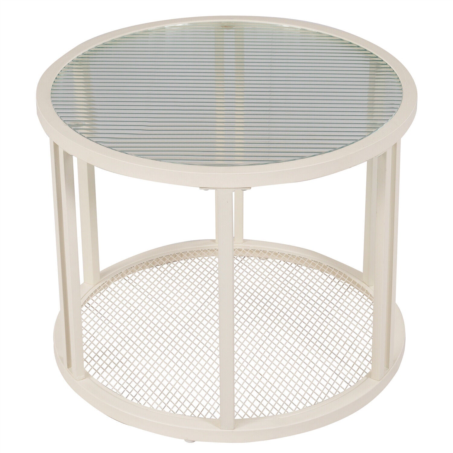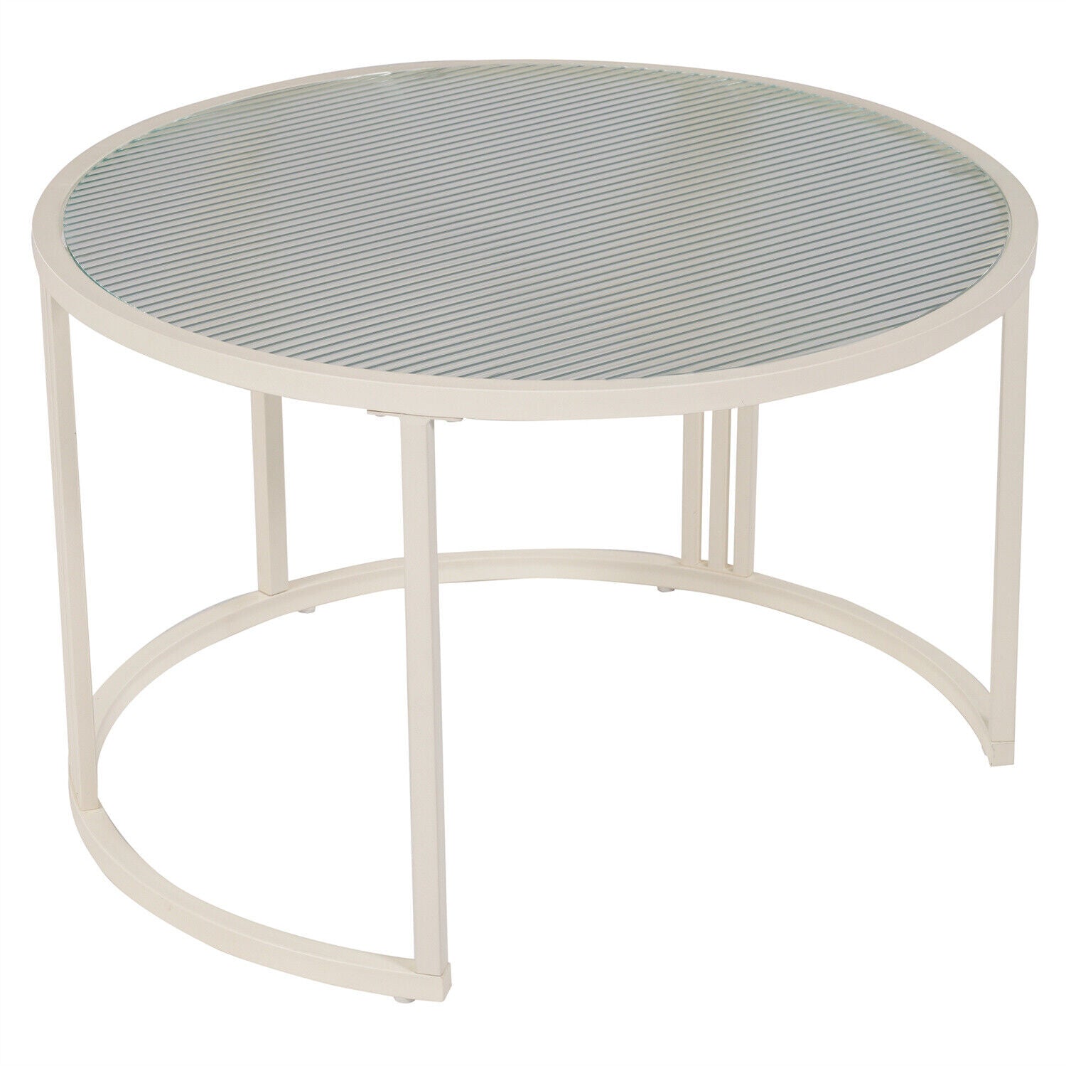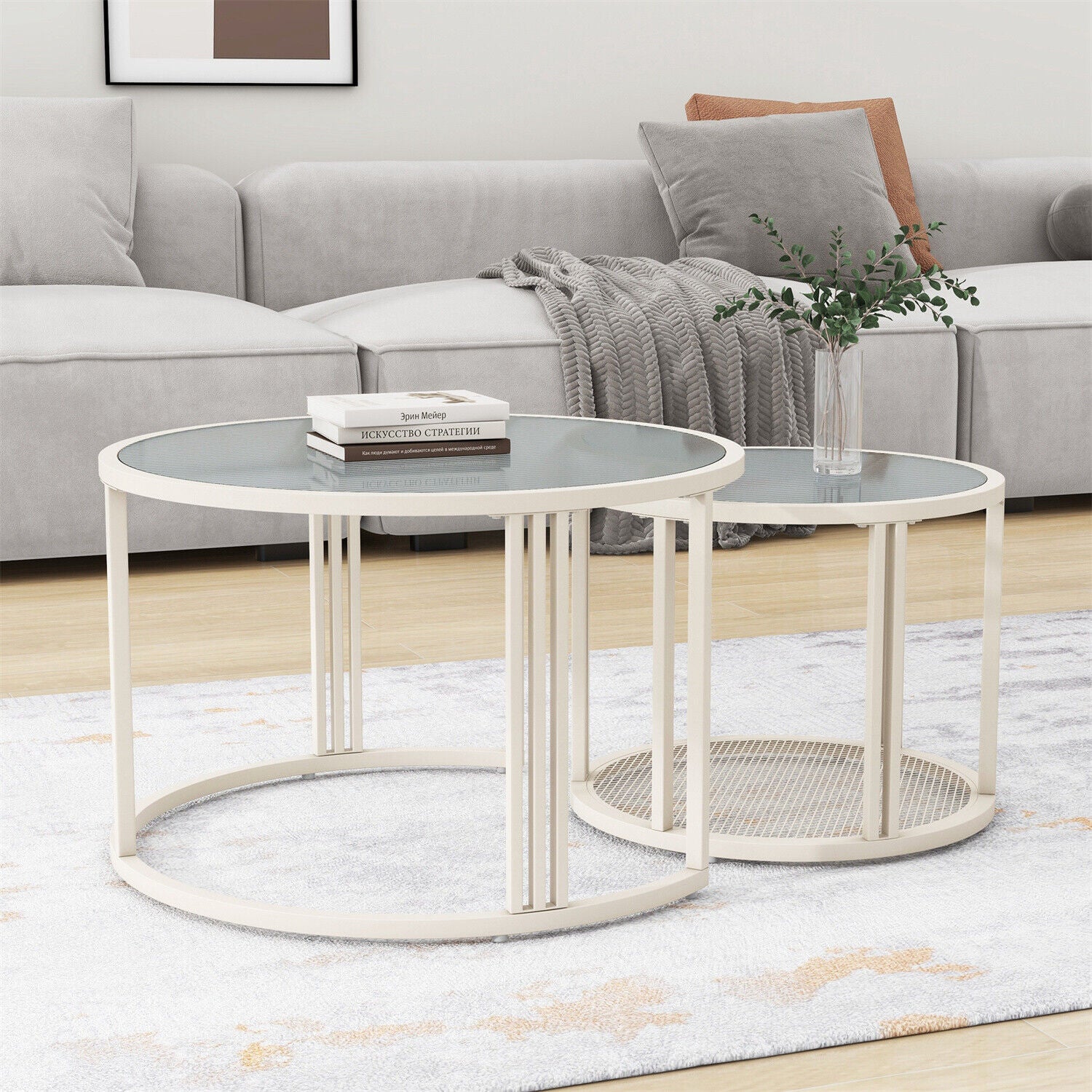 Round Nesting Coffee Tables Set of 2 Glass Top Side End Tables with Metal Frame