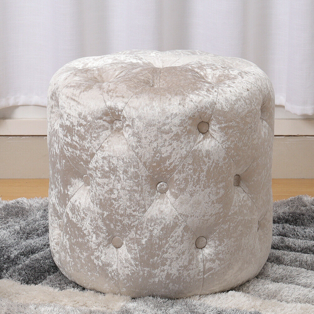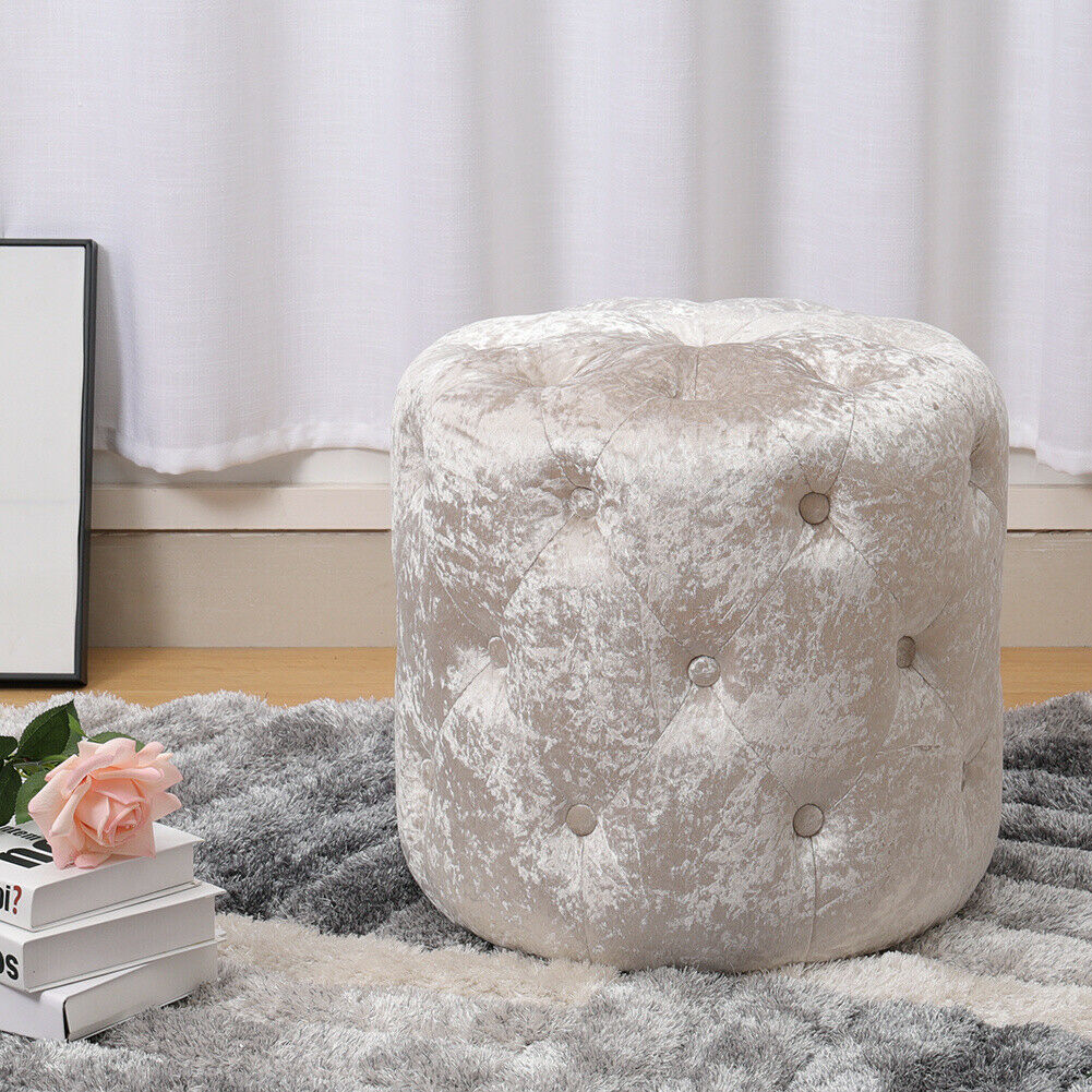 Round Pouffe Stool Velvet Upholstered Footstool Ottoman Living Room Footrest