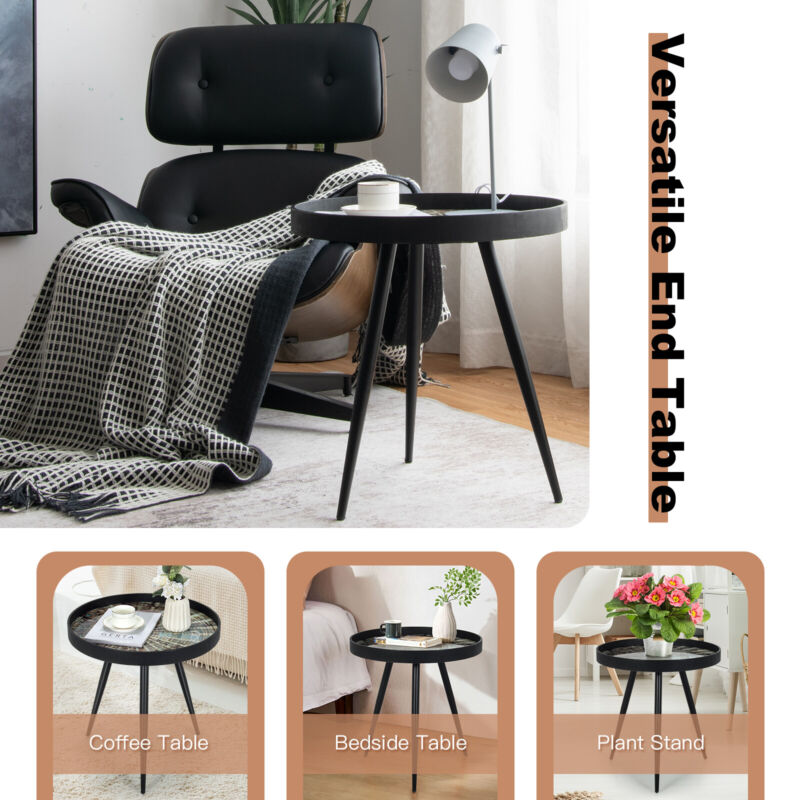 Round Side Table Wooden Coffee Table Tripod End Table Nightstand Living Room