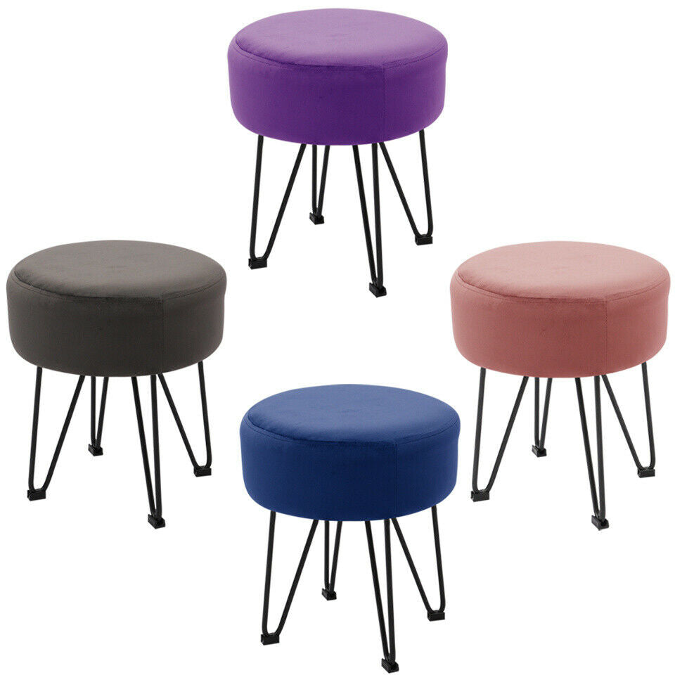Round Sofa Footstool Ottoman Dressing Table Stool Bedroom Makeup Chair Velvet UK
