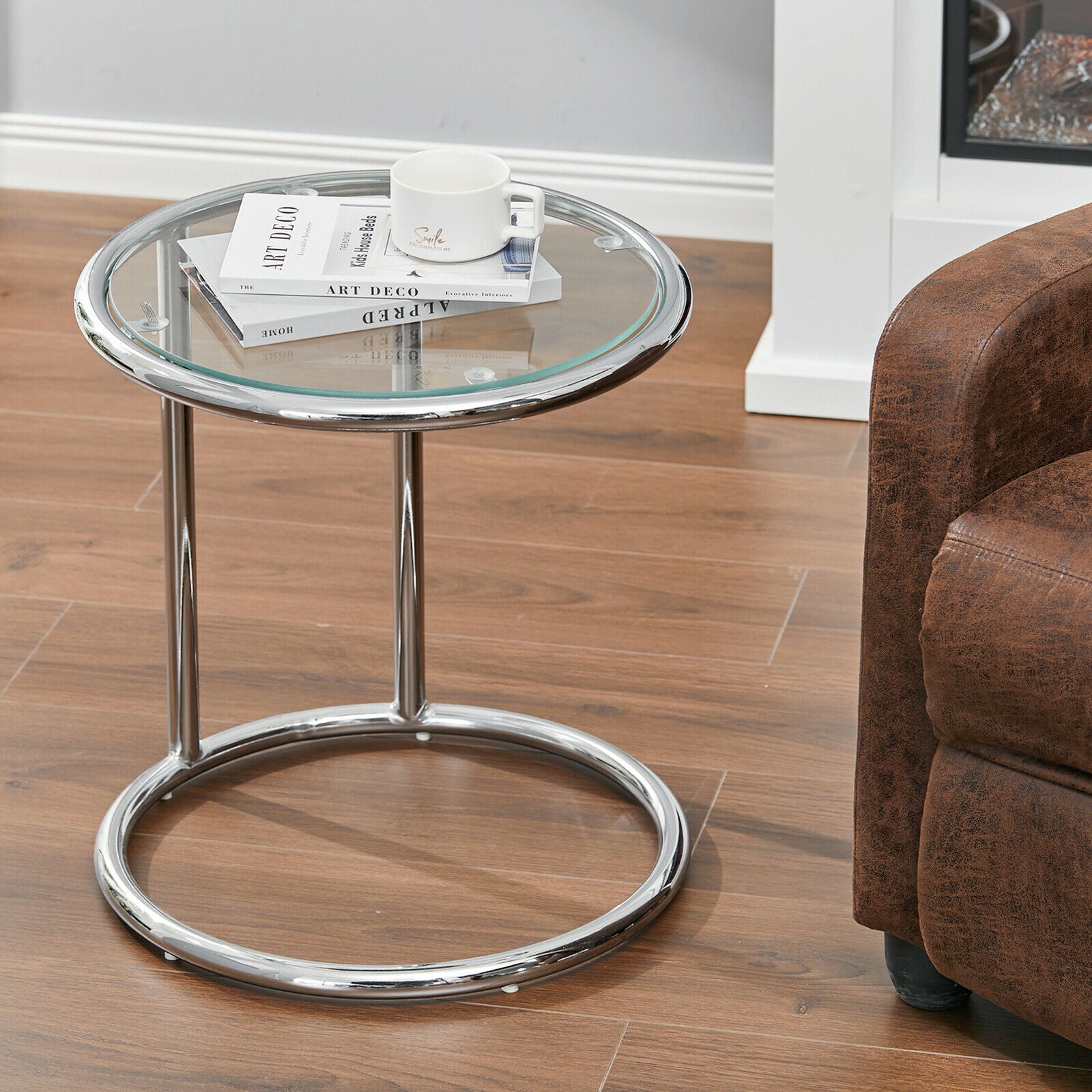 Round Sofa Side Table Black With Clear Glass Top Coffee End Table for LivingRoom