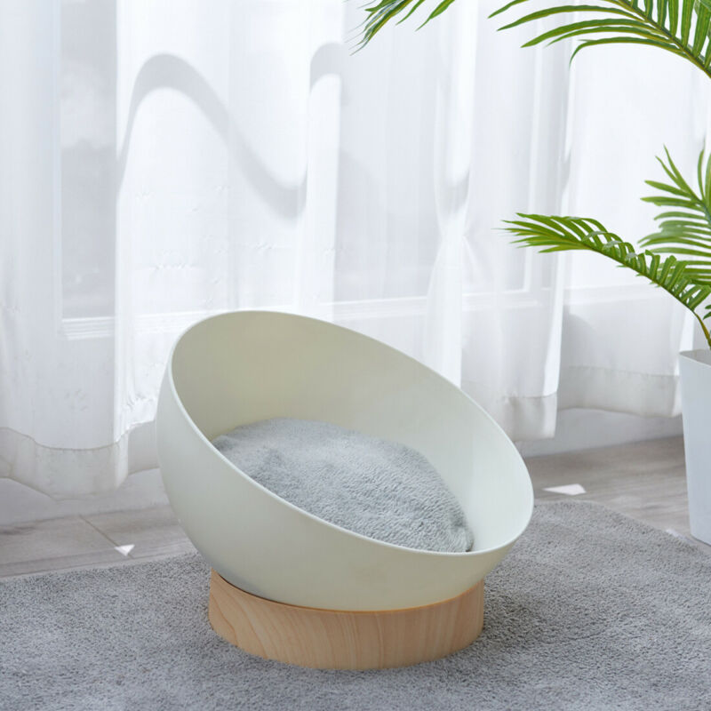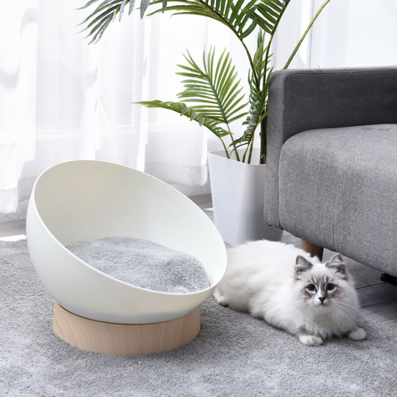 Round Soft Elevated Dog Cat Sofa Bed Couch Pet Bed Wood Base W/ Removed Cushion