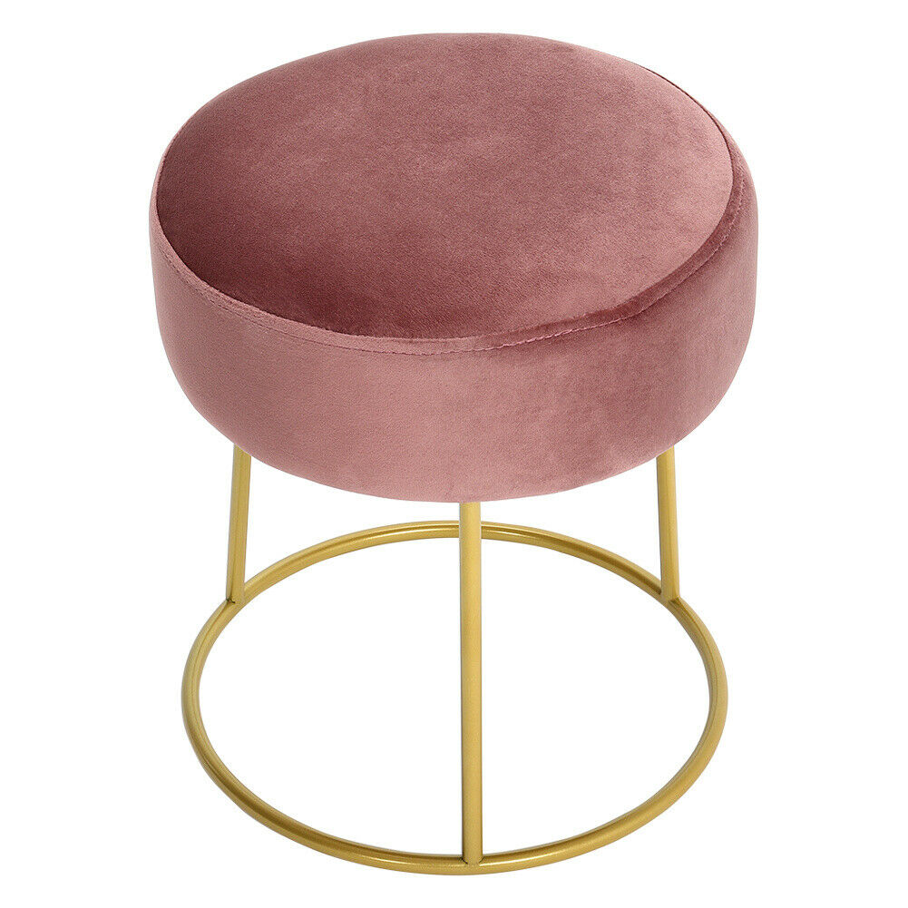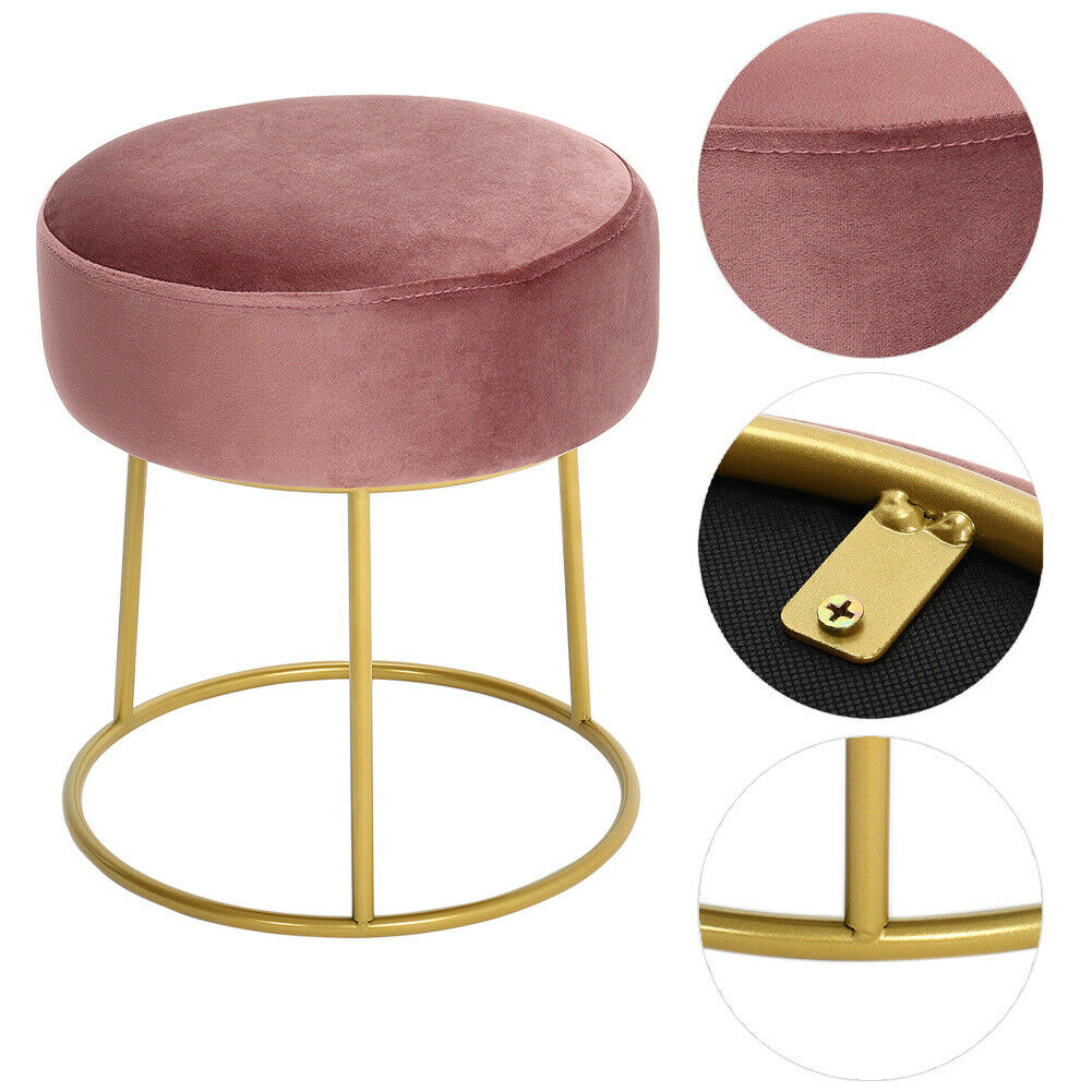 Round Vanity Bedroom Velvet Dressing Table Chair Stool Pouffe Metal Golden Leg