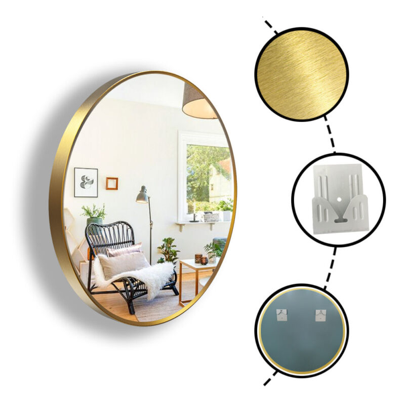 Round Wall Mirror for Bathroom Bedroom with Black/Gold Frame Wall Mounted
